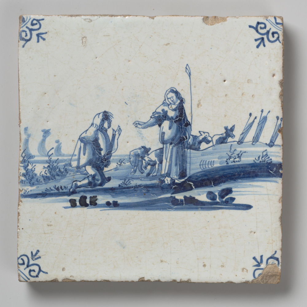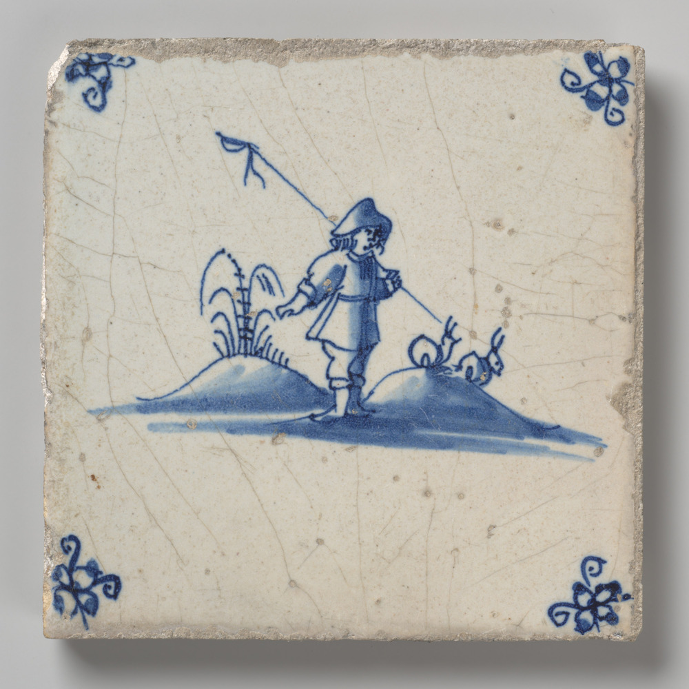 tegel van aardewerk met tinglazuur, voorstellende: h...
