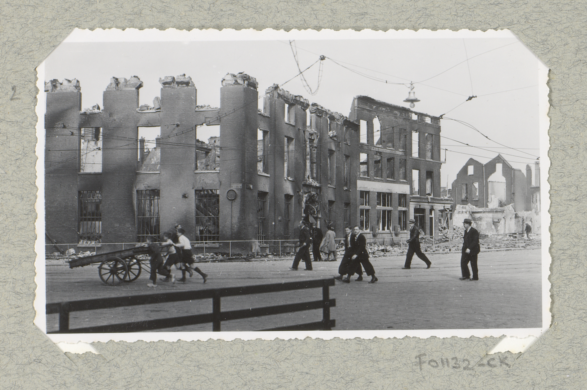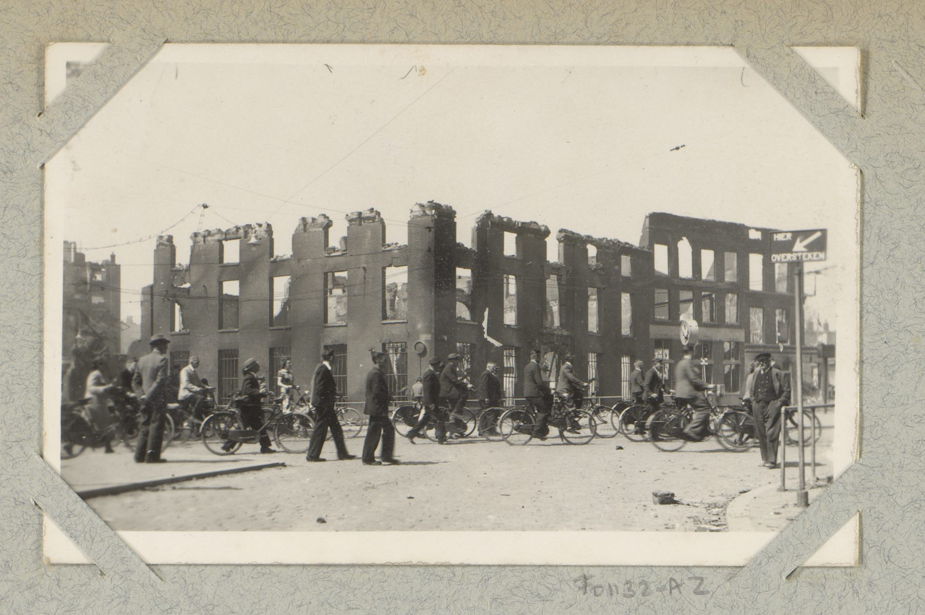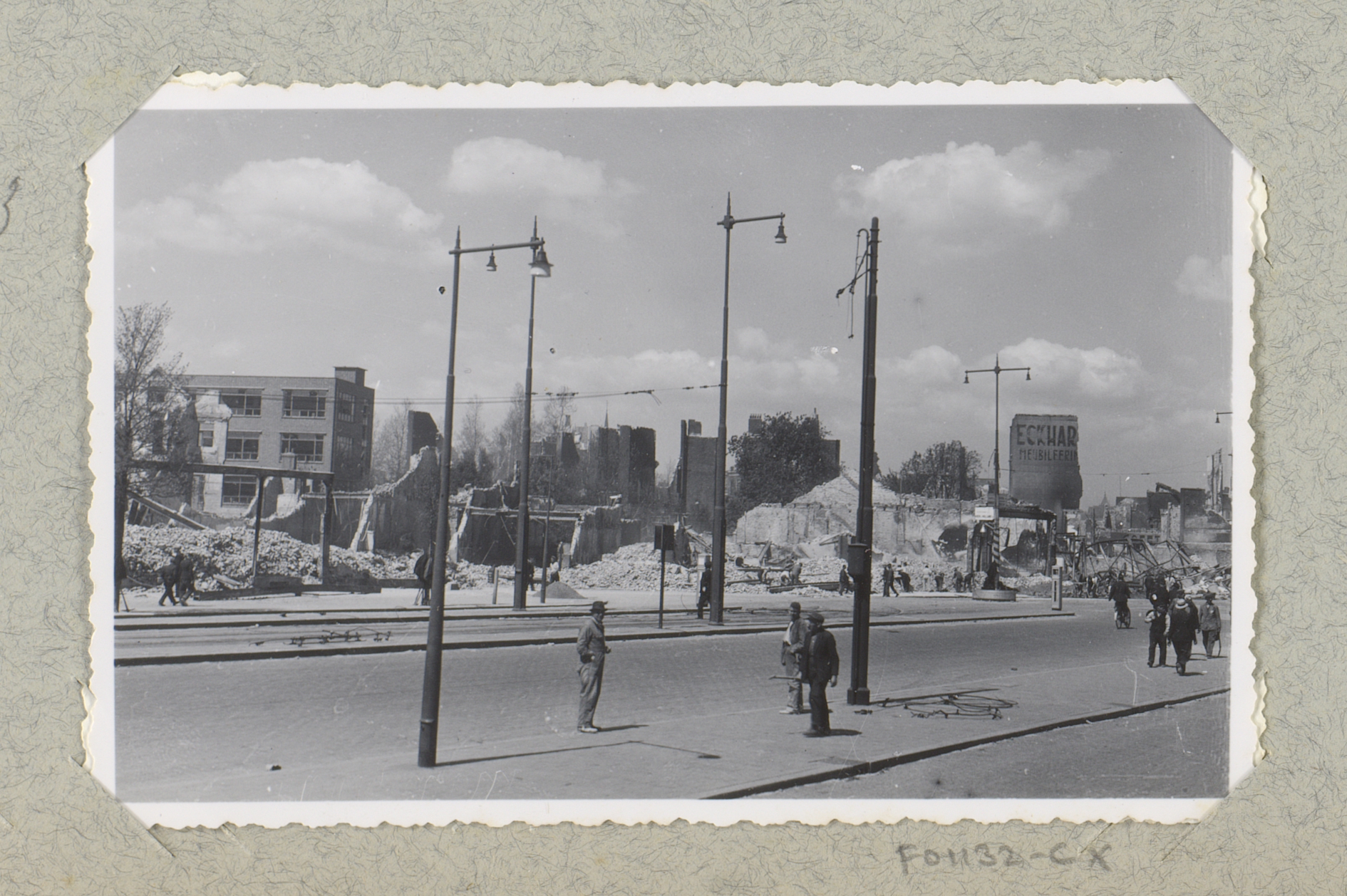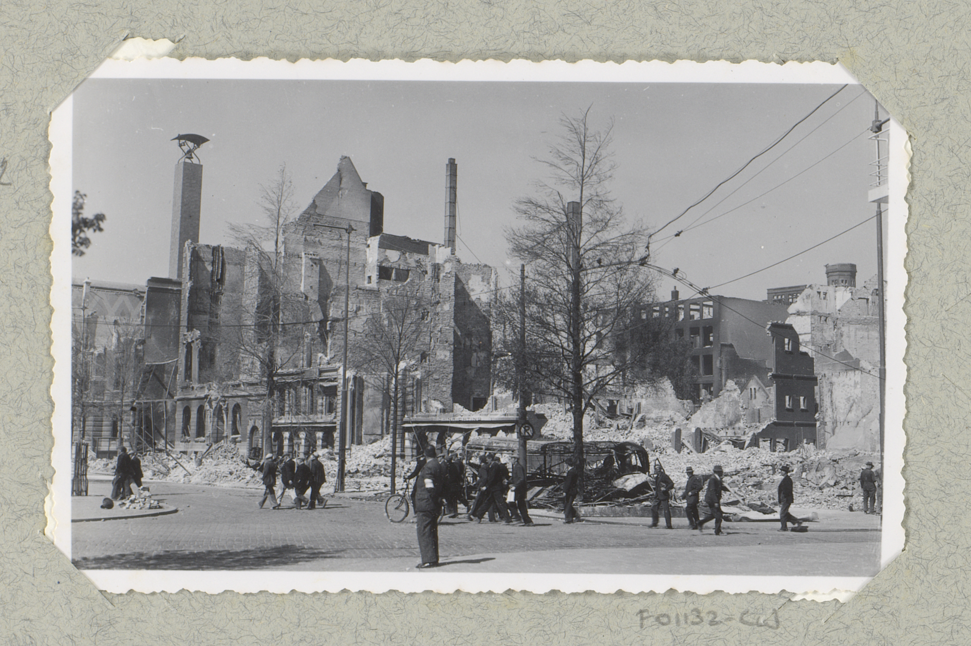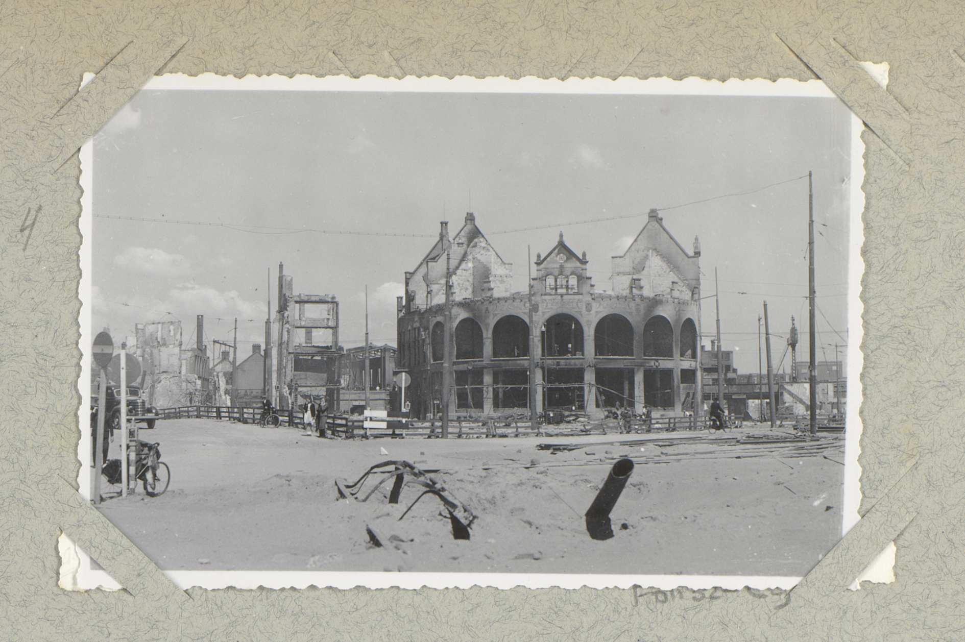 Ruïnes van gebouwen bij de hoek van de Kruiskade met...