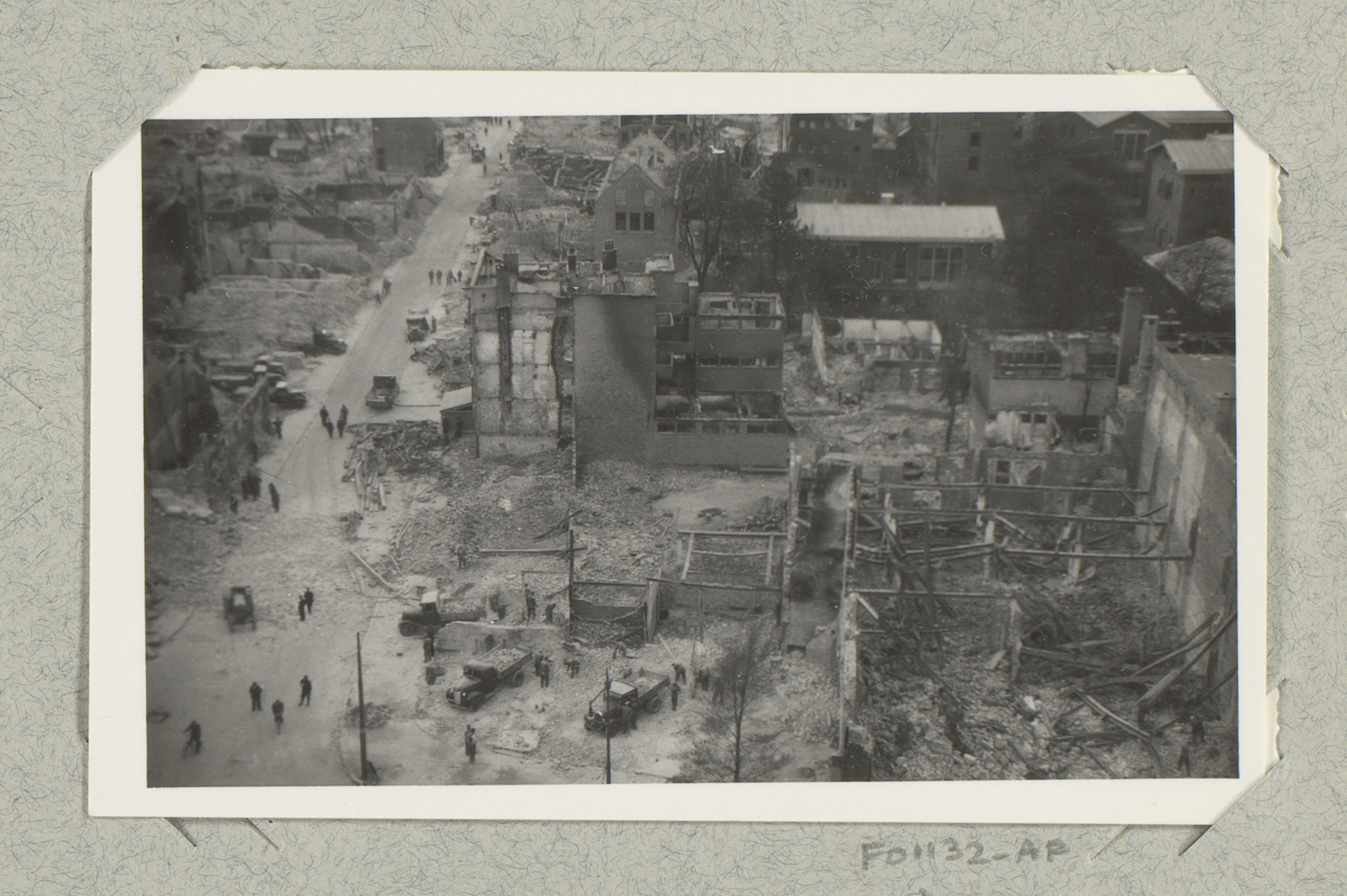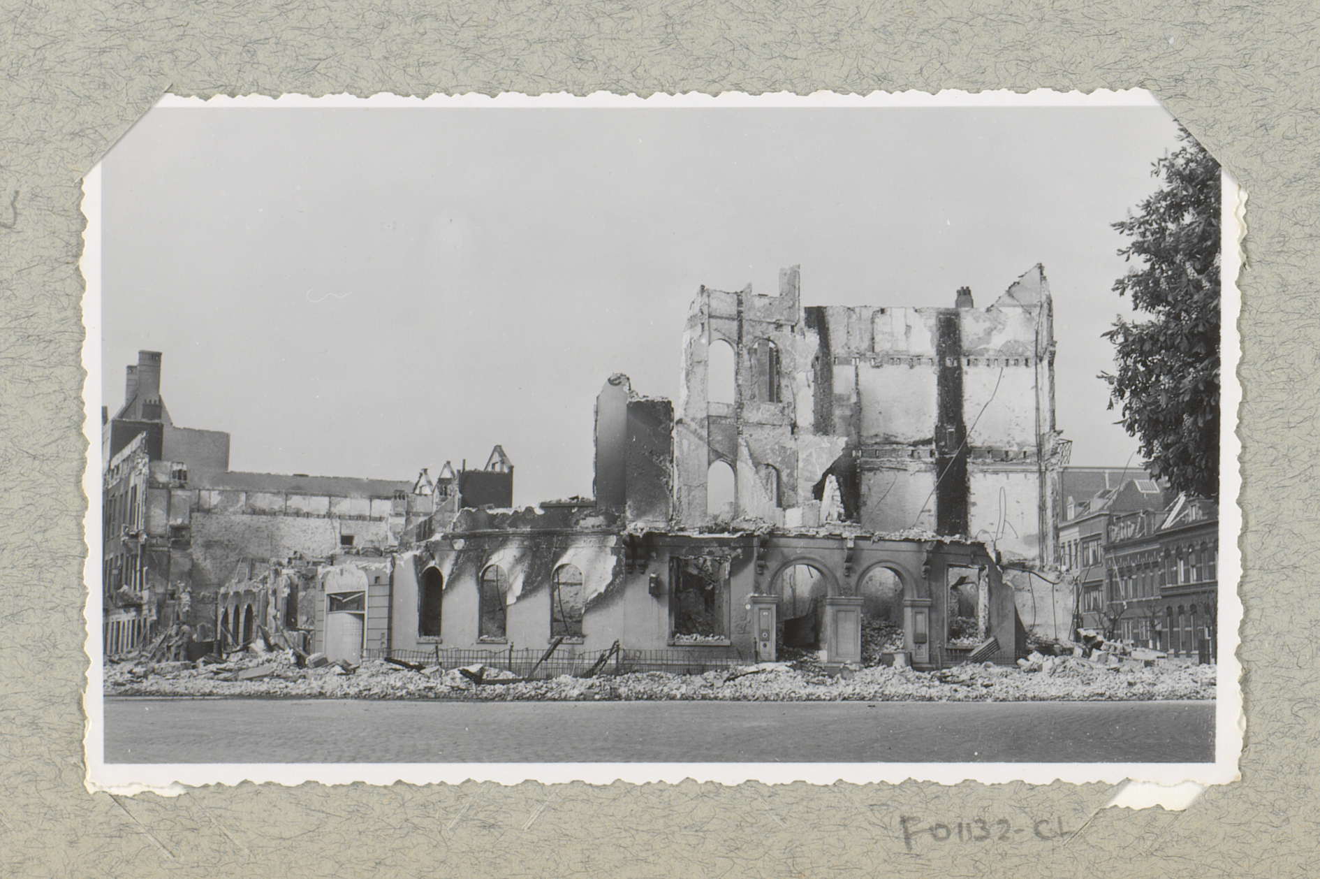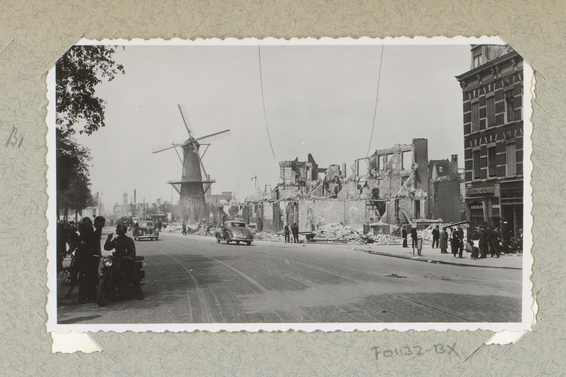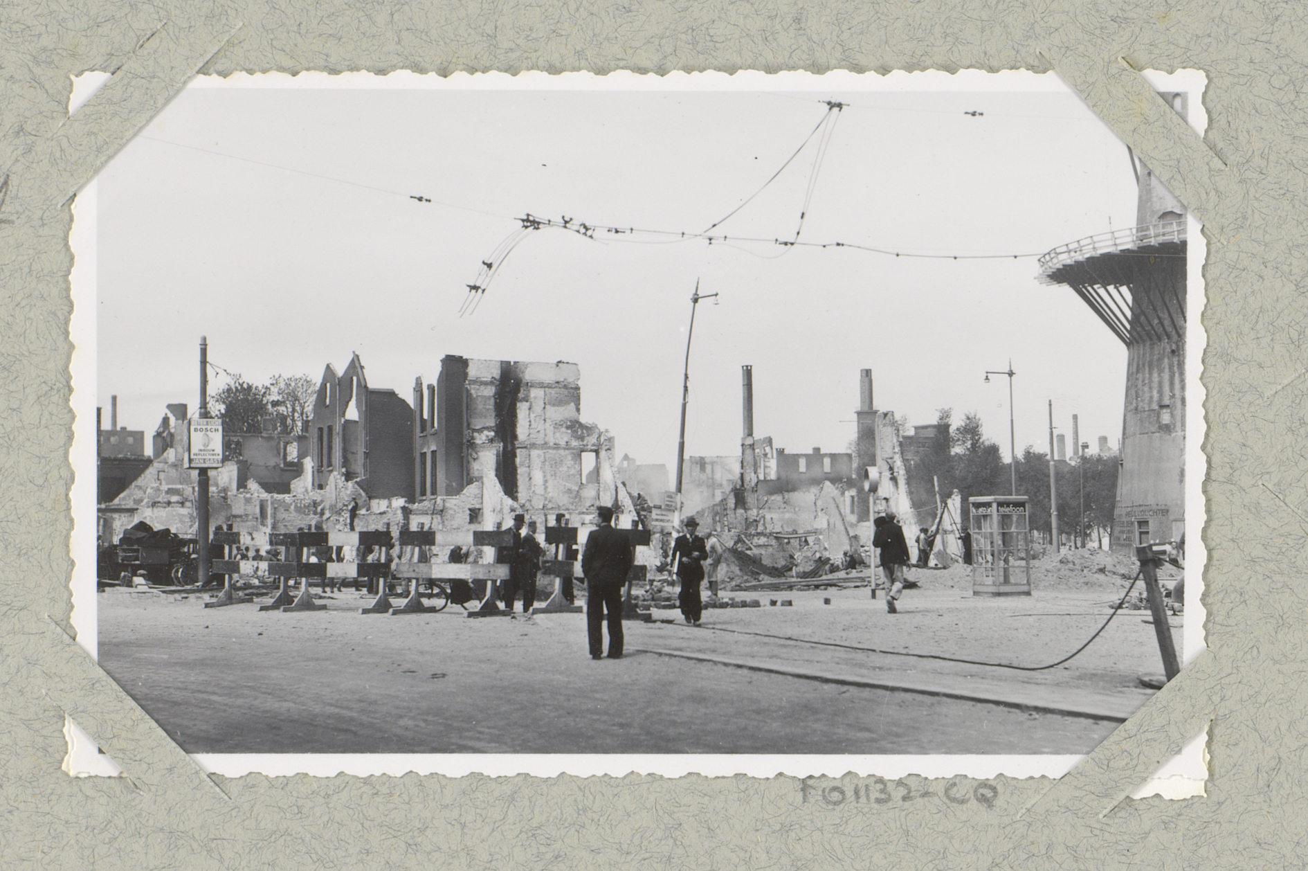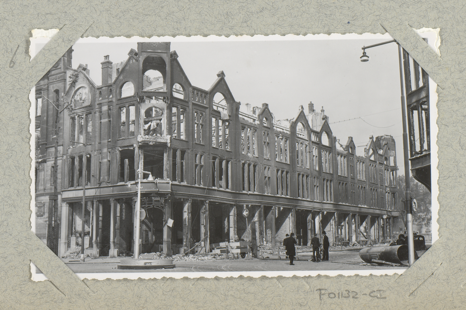 Ruïnes van gebouwen bij de hoek van de Kruiskade met...