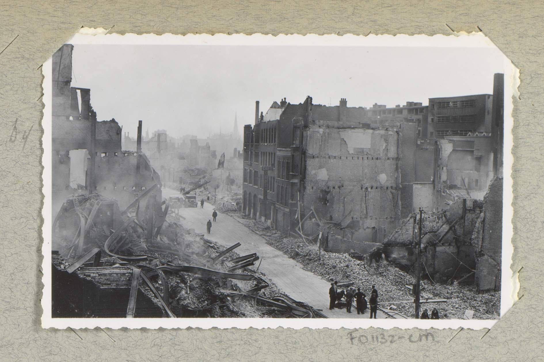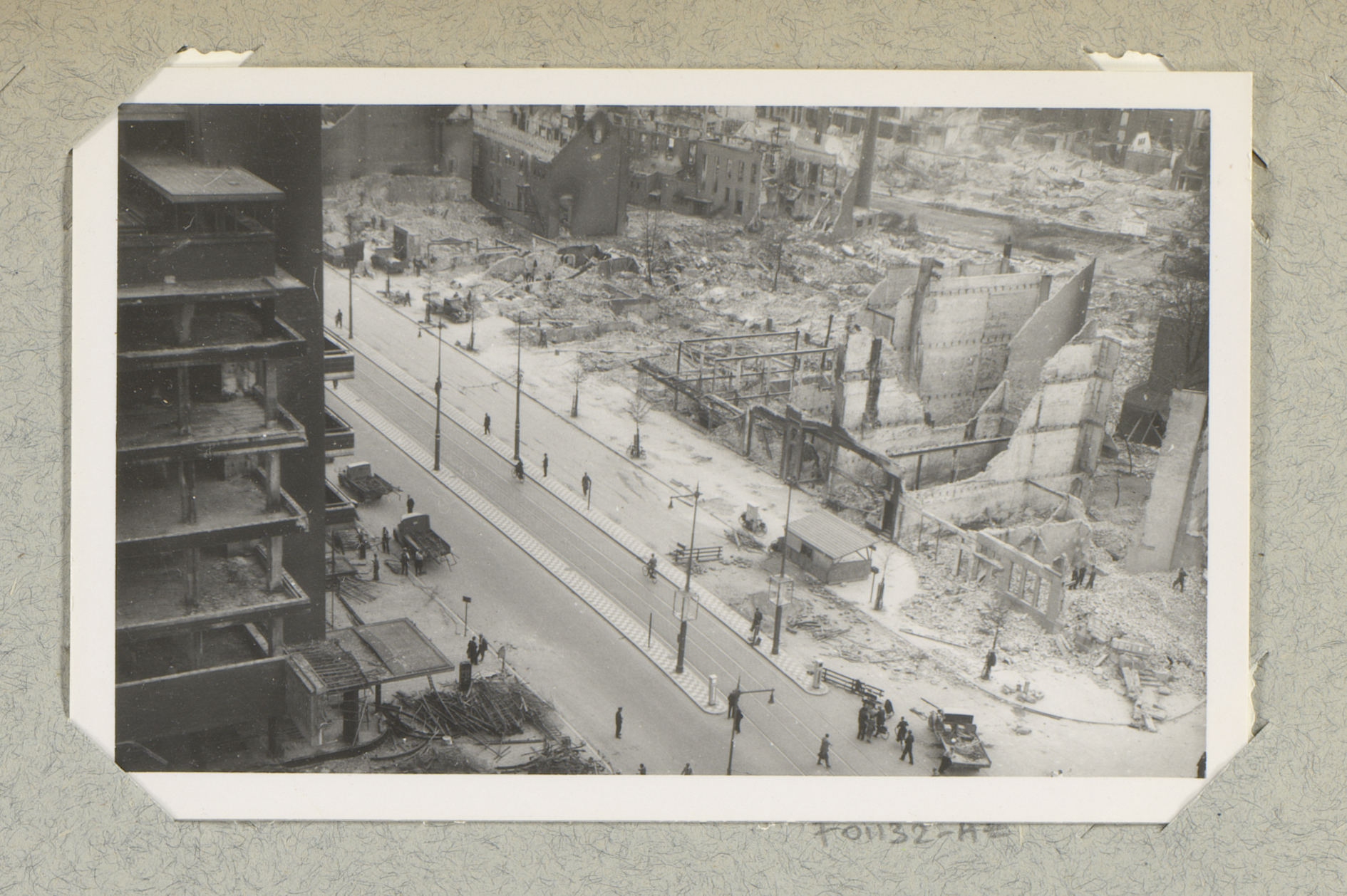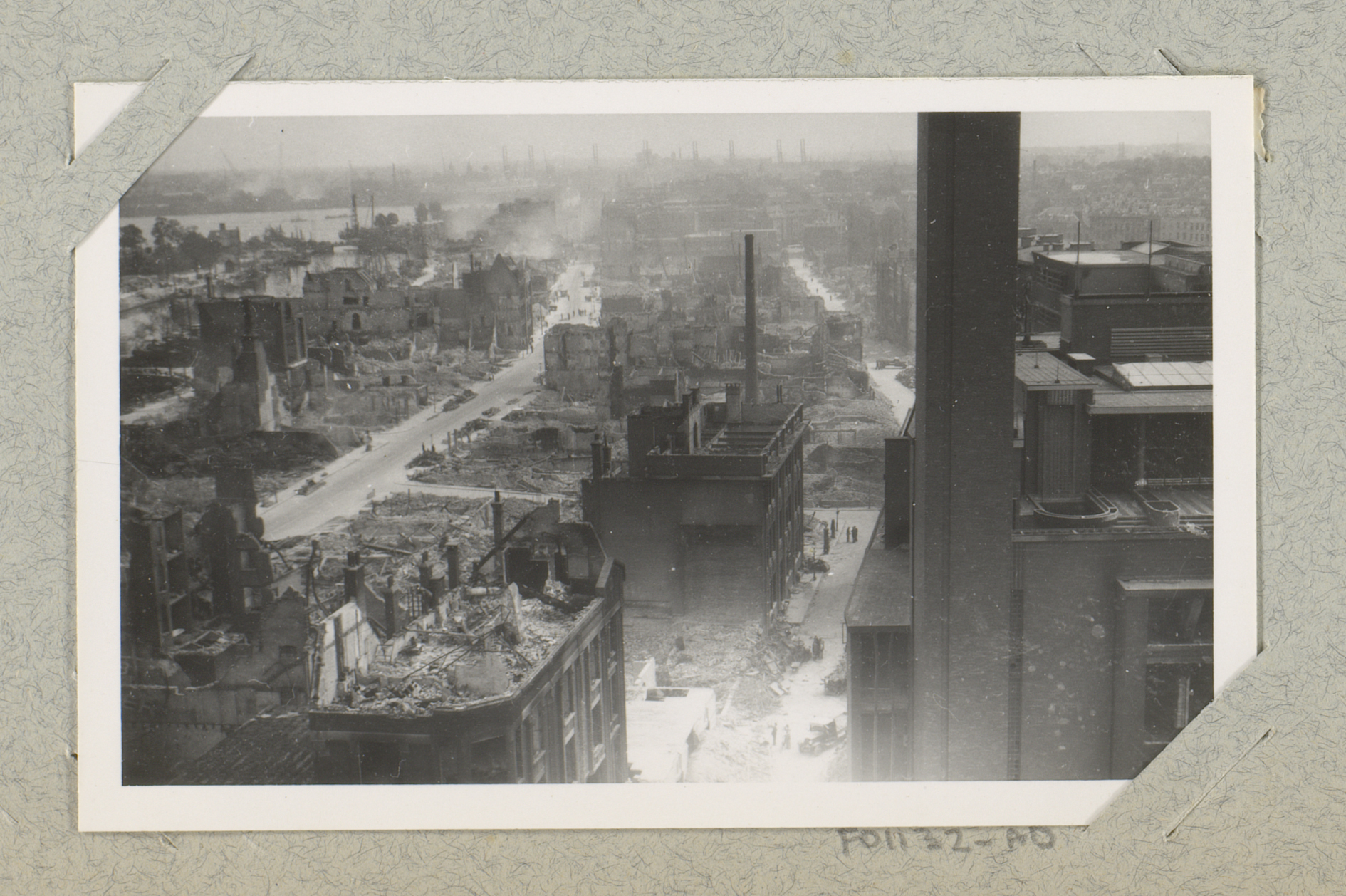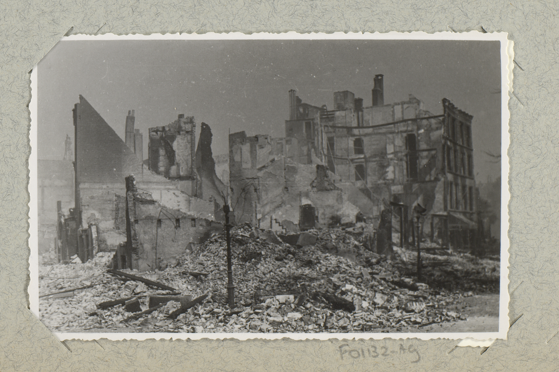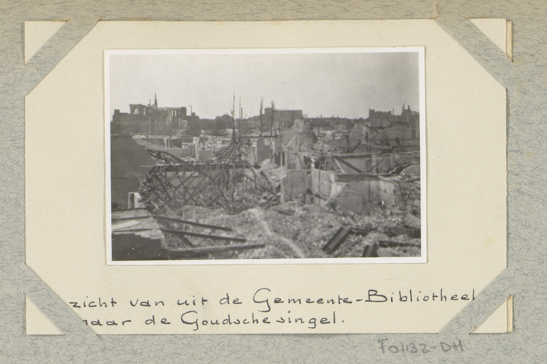 Ruïnes van gebouwen aan de Hoogstraat, gezien vanaf ...