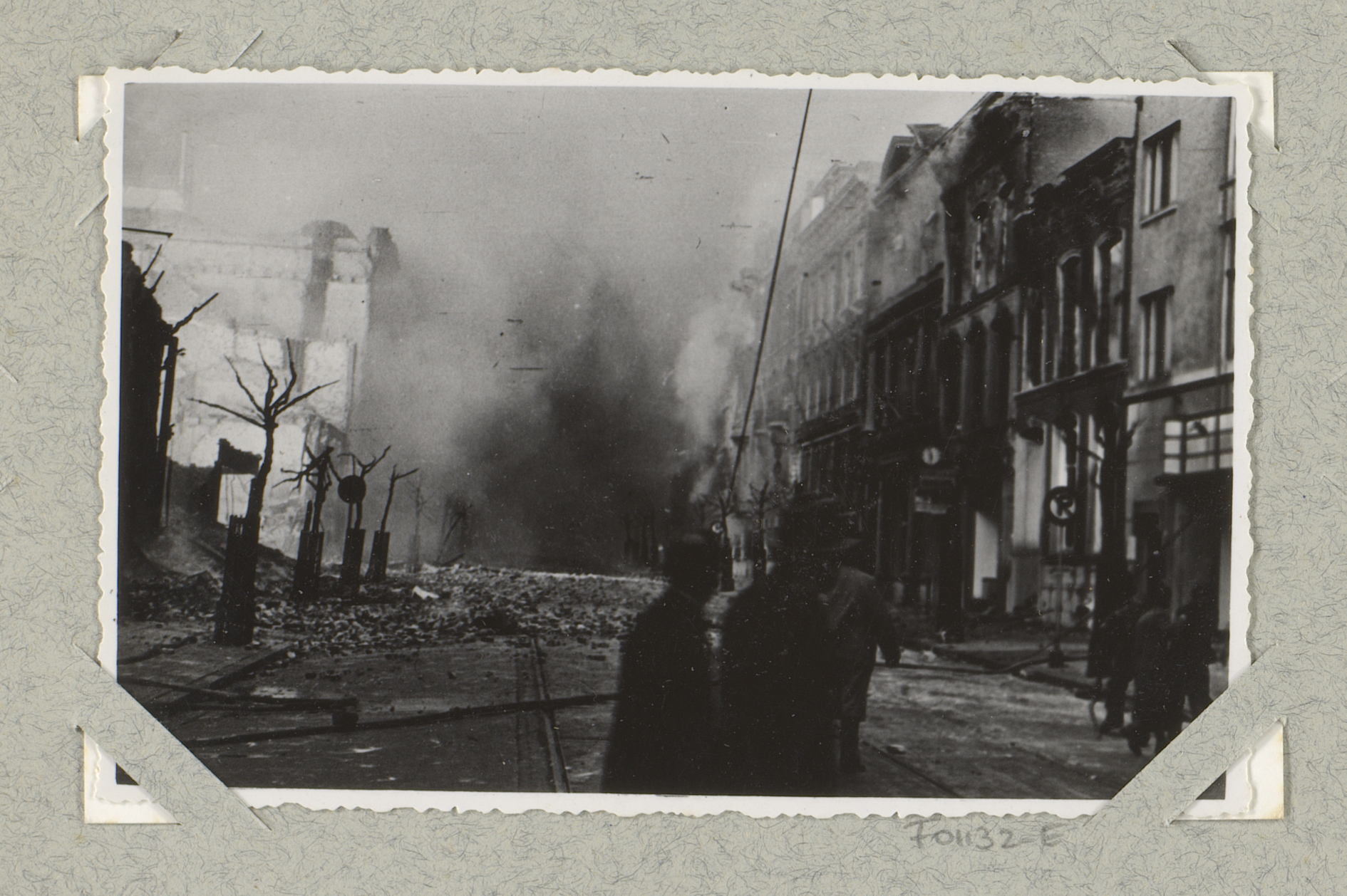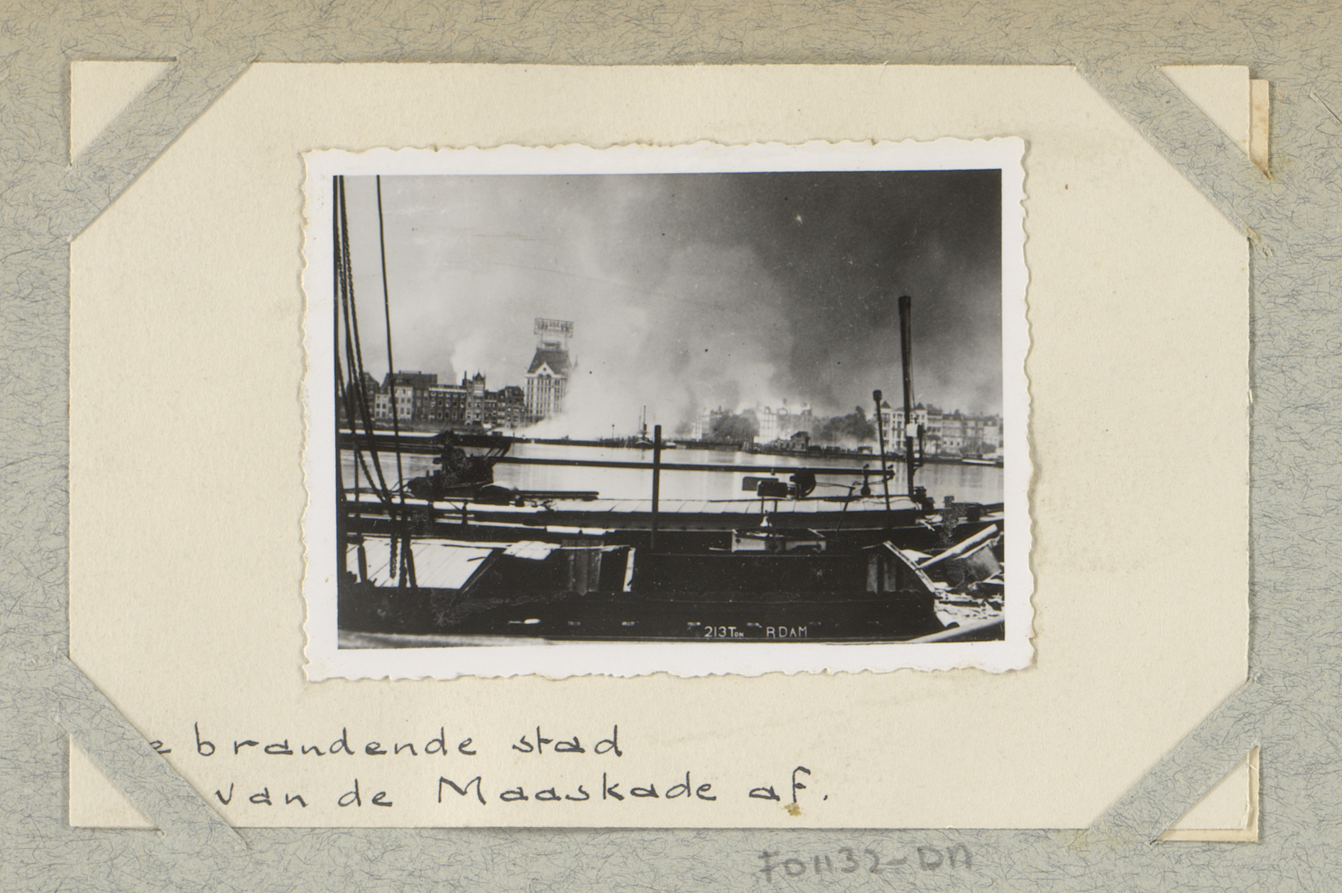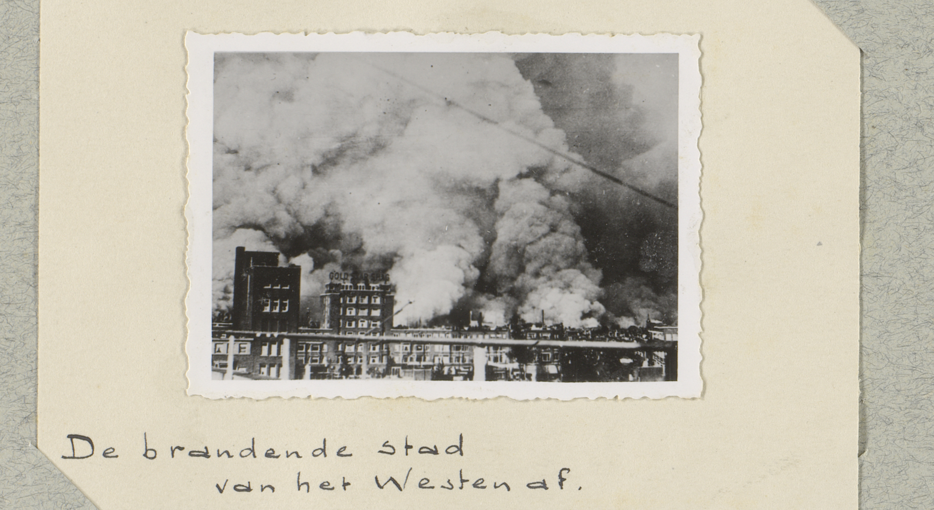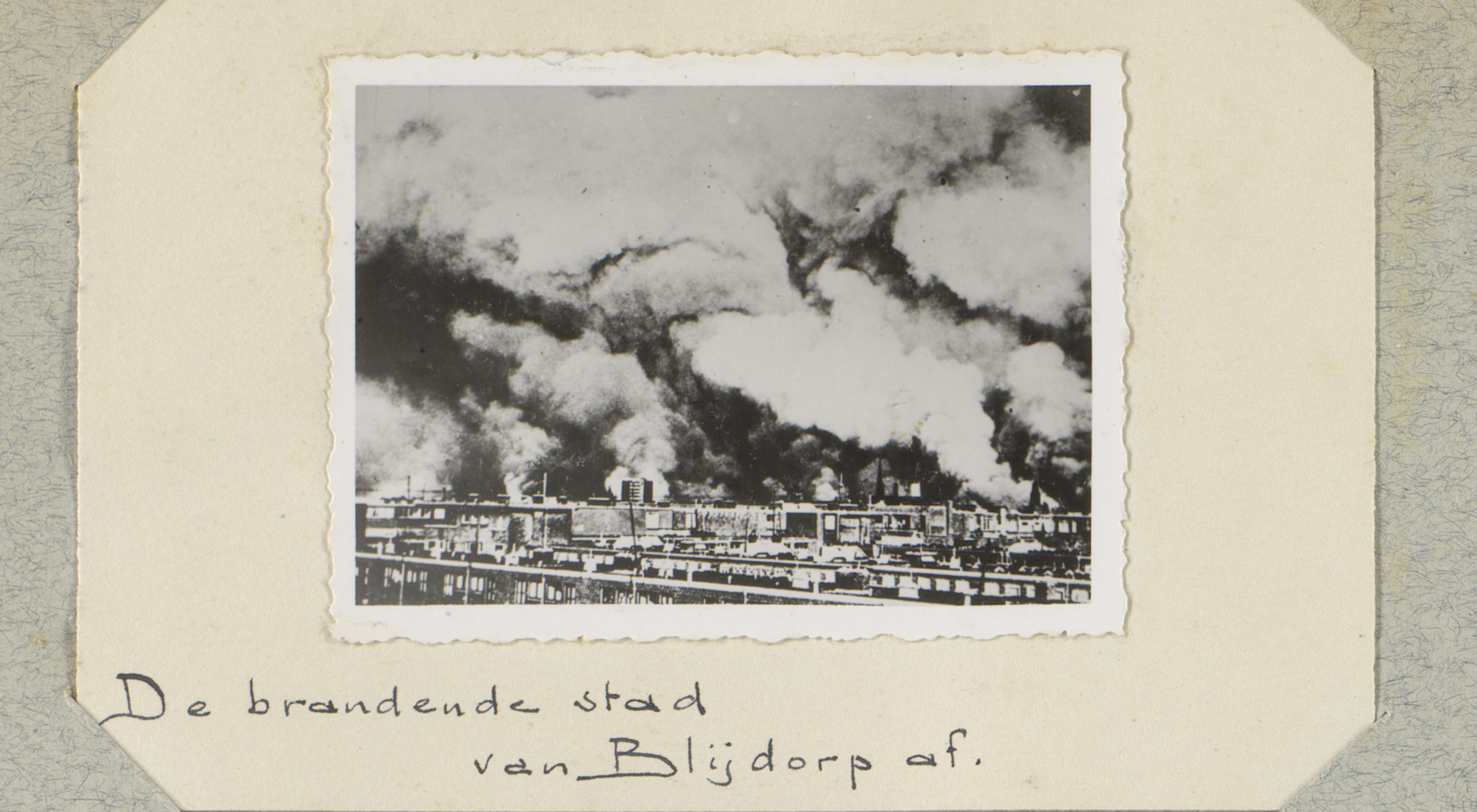 Ruïnes met rookwolken aan de Schiedamsedijk te Rotte...