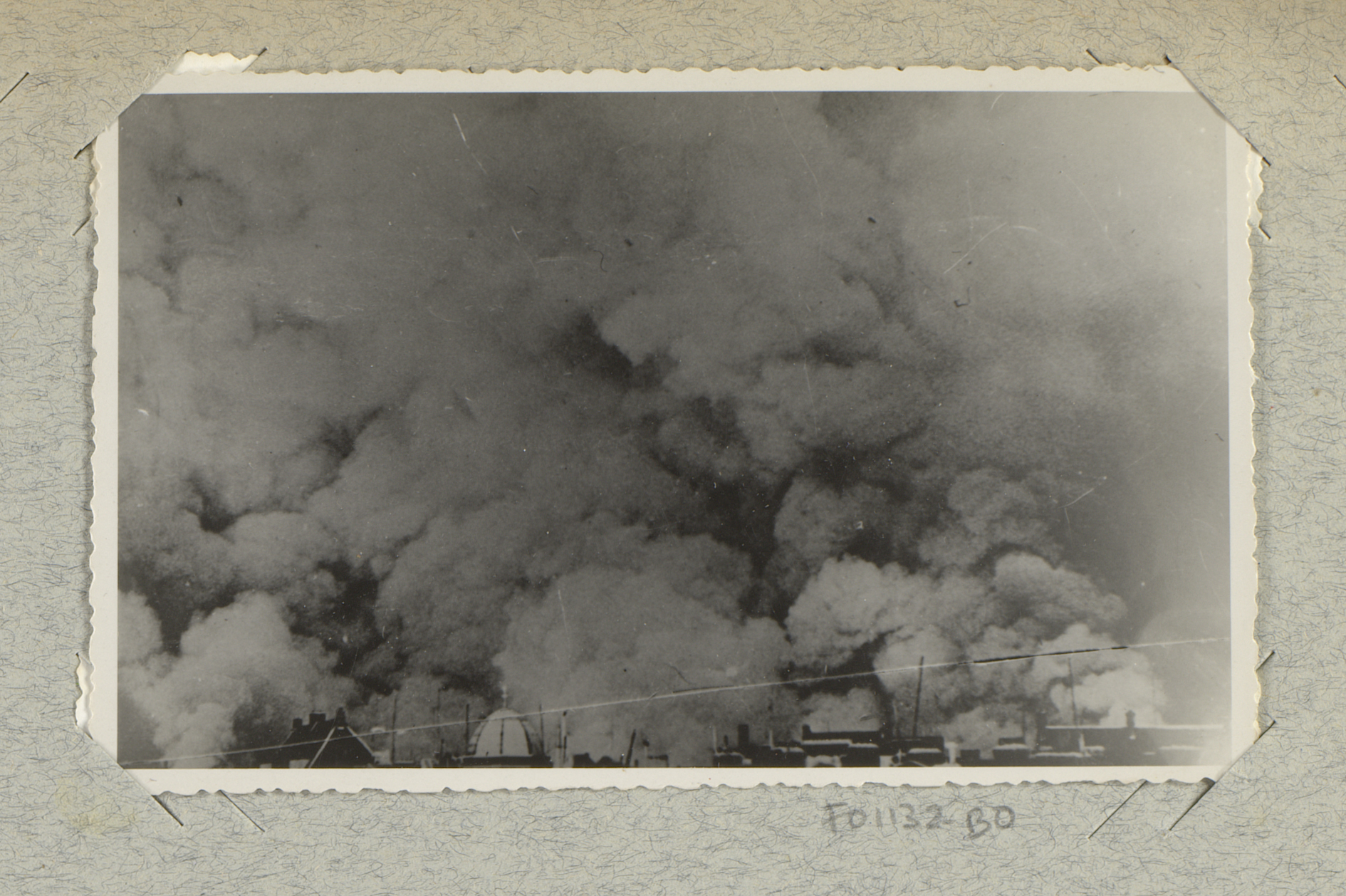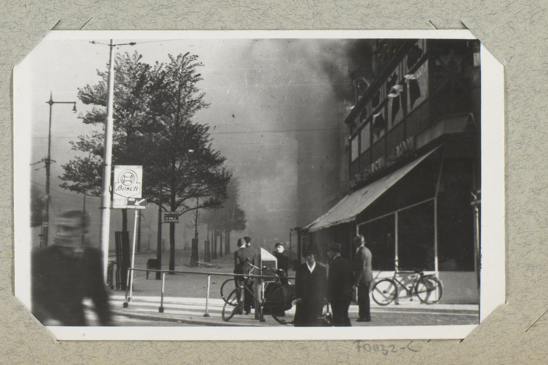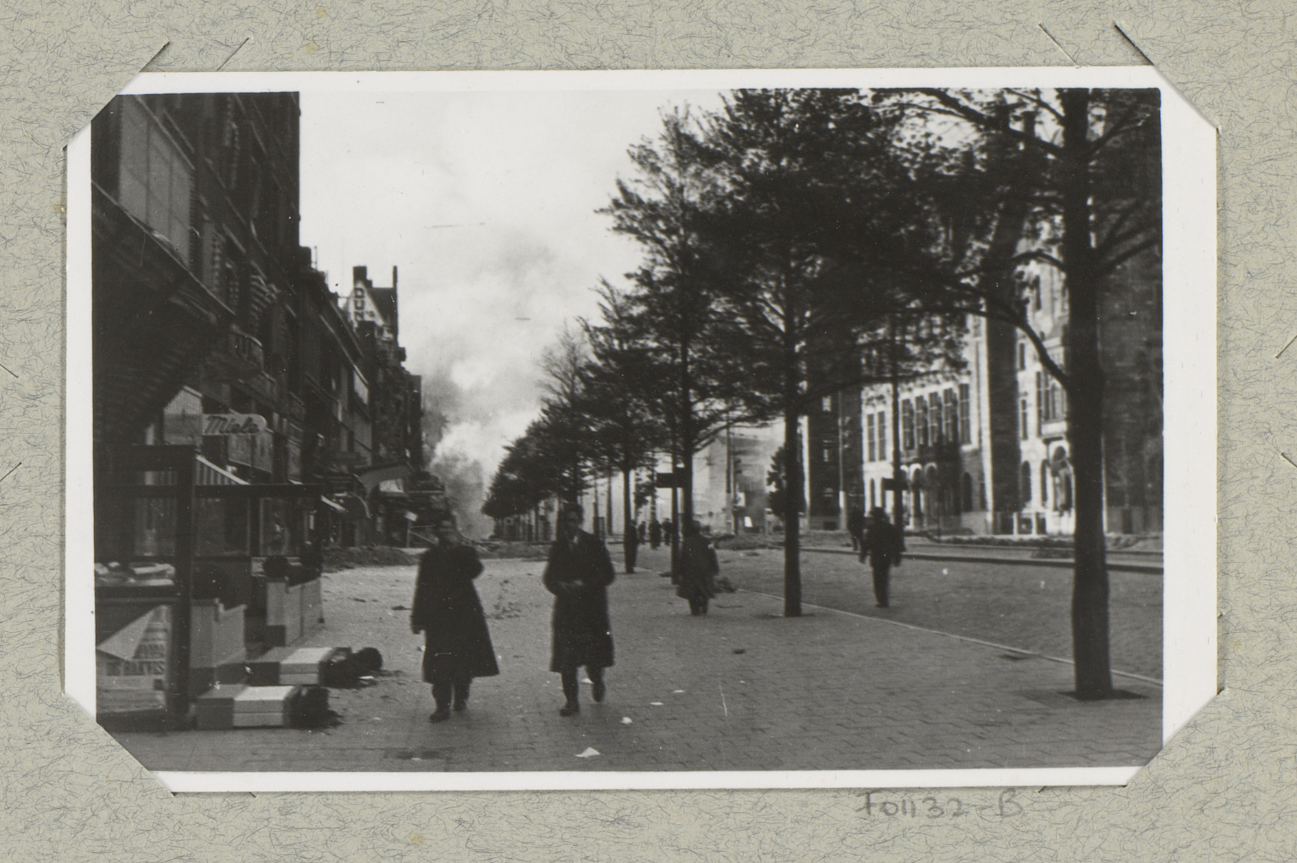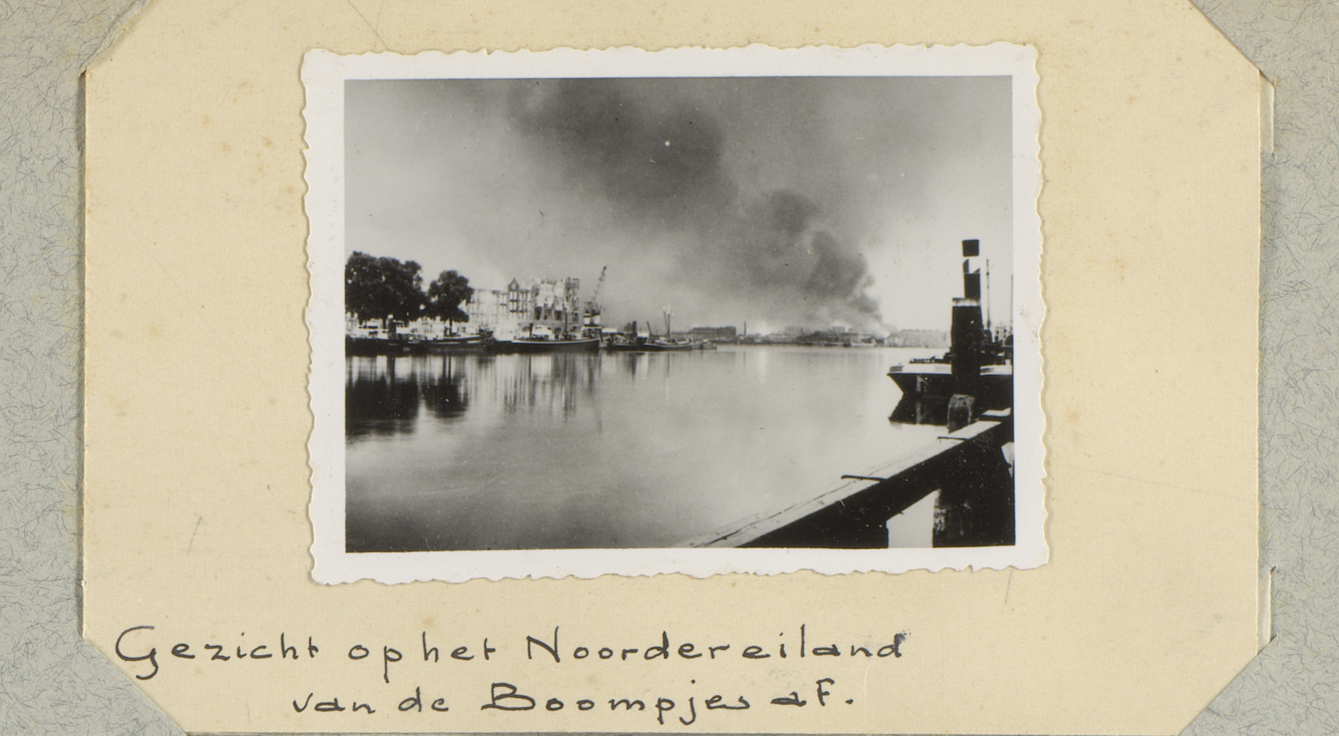 Ruïnes met rookwolken aan de Schiedamsedijk te Rotte...