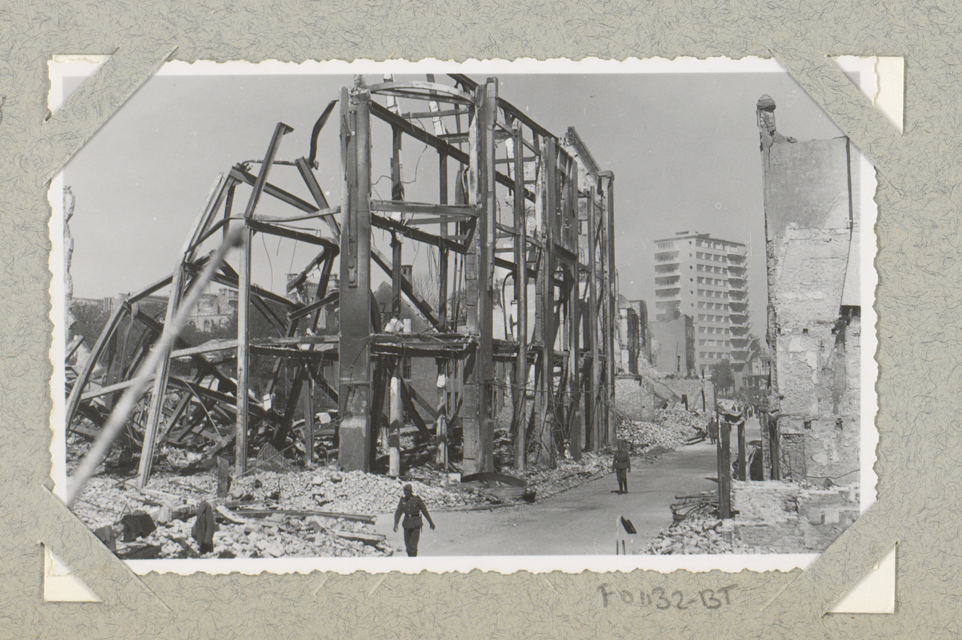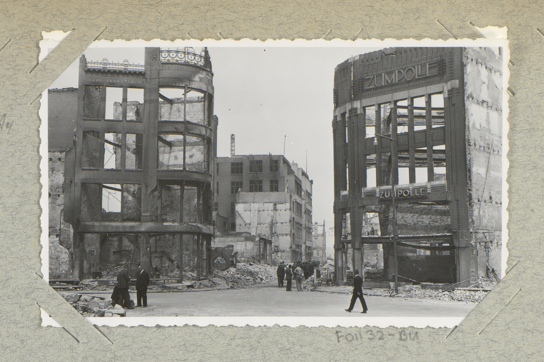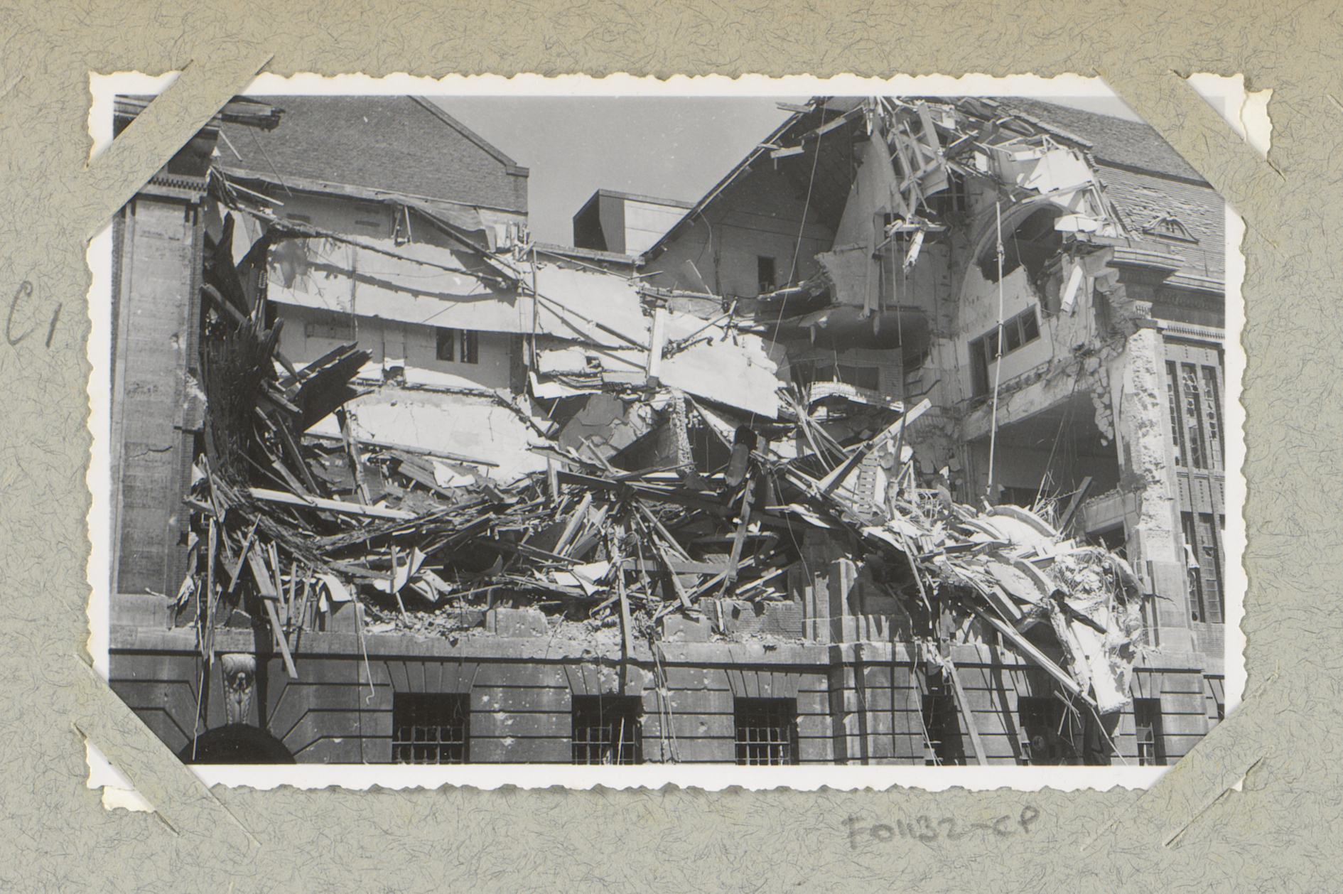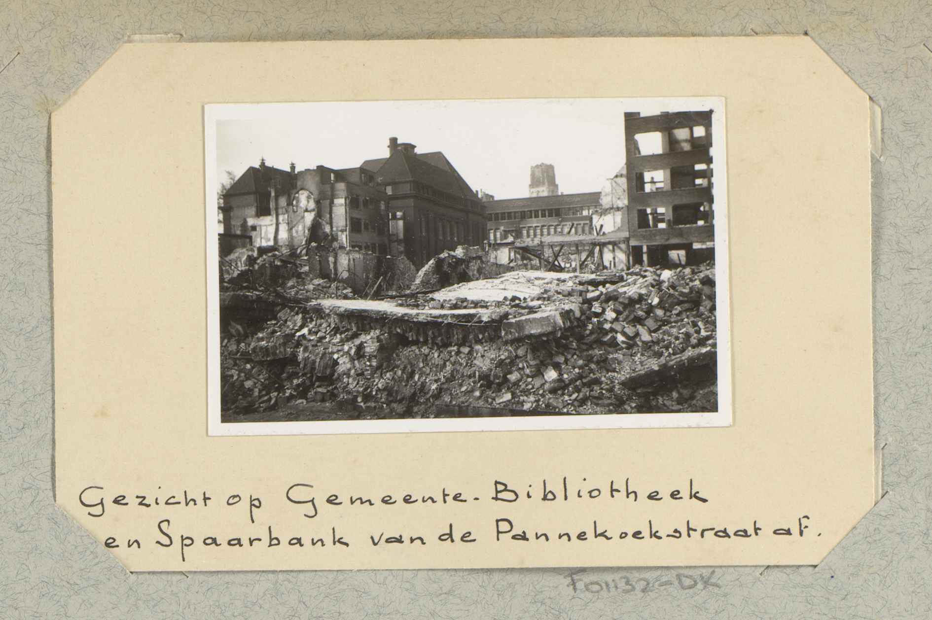 Ruïnes van de Spaarbank en Gemeentebibliotheek, gezi...
