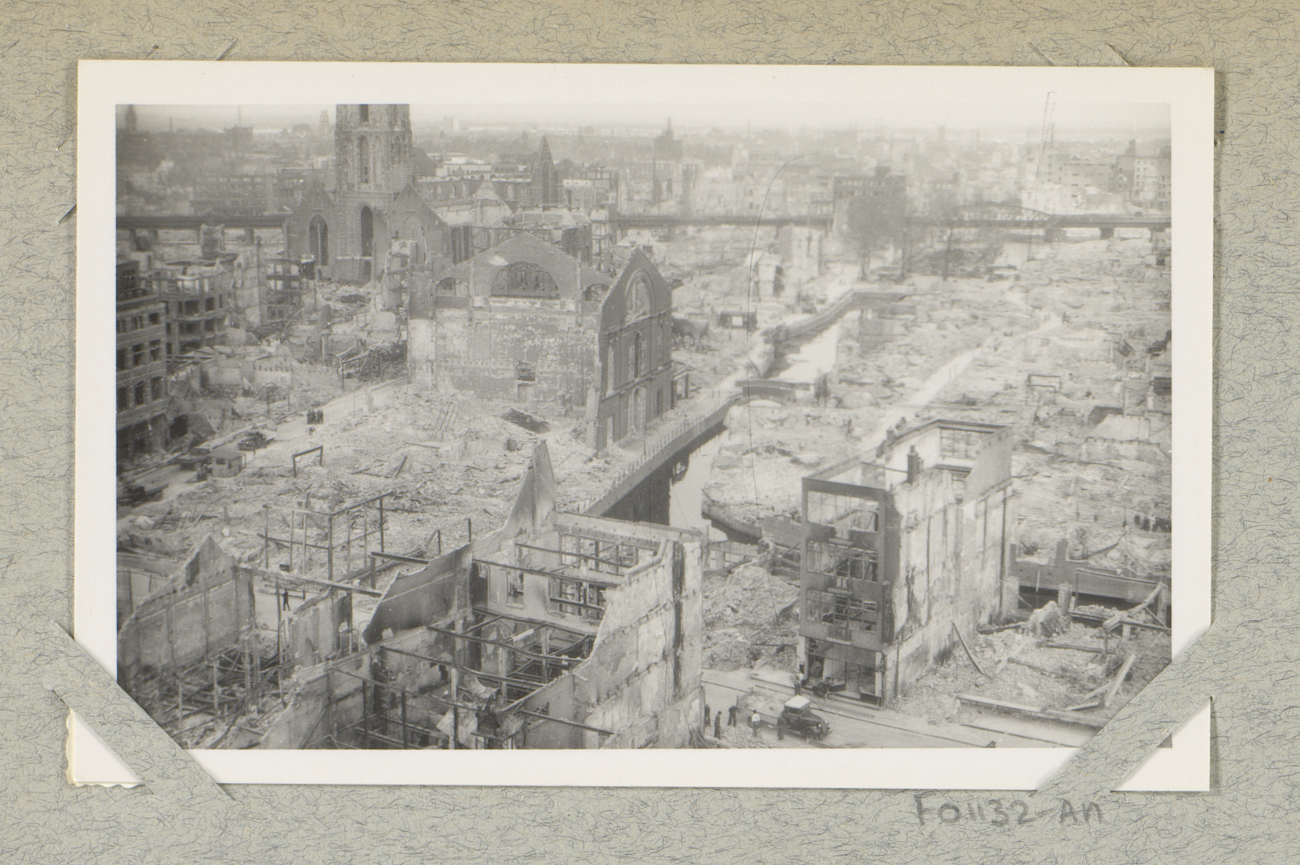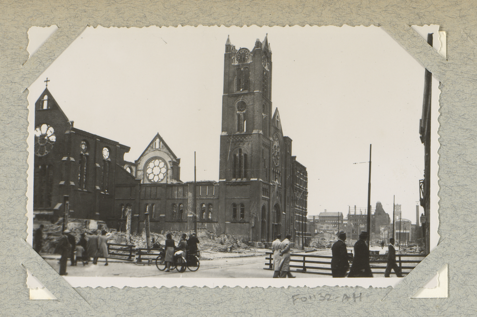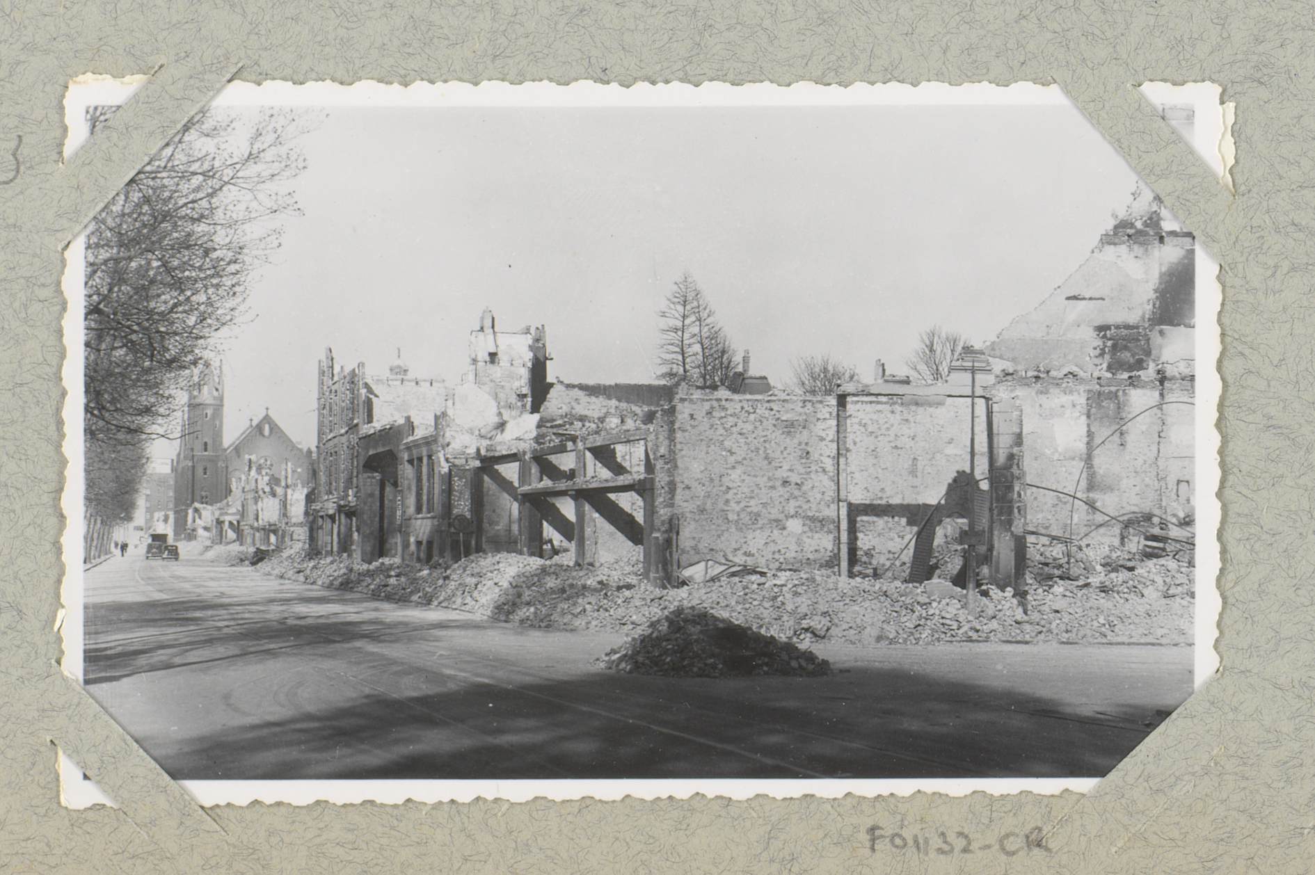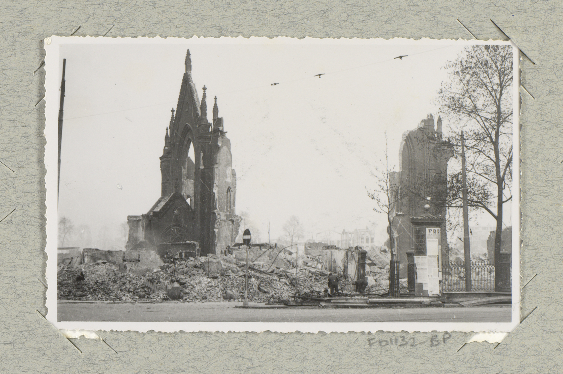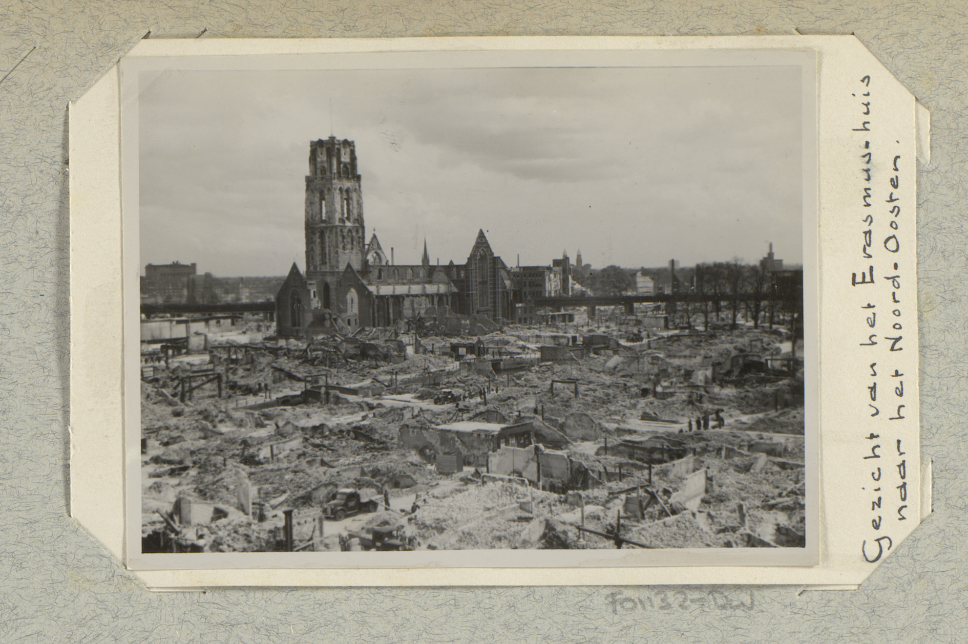 Ruïnes van de Westerkerk en de Kruiskade te Rotterdam
