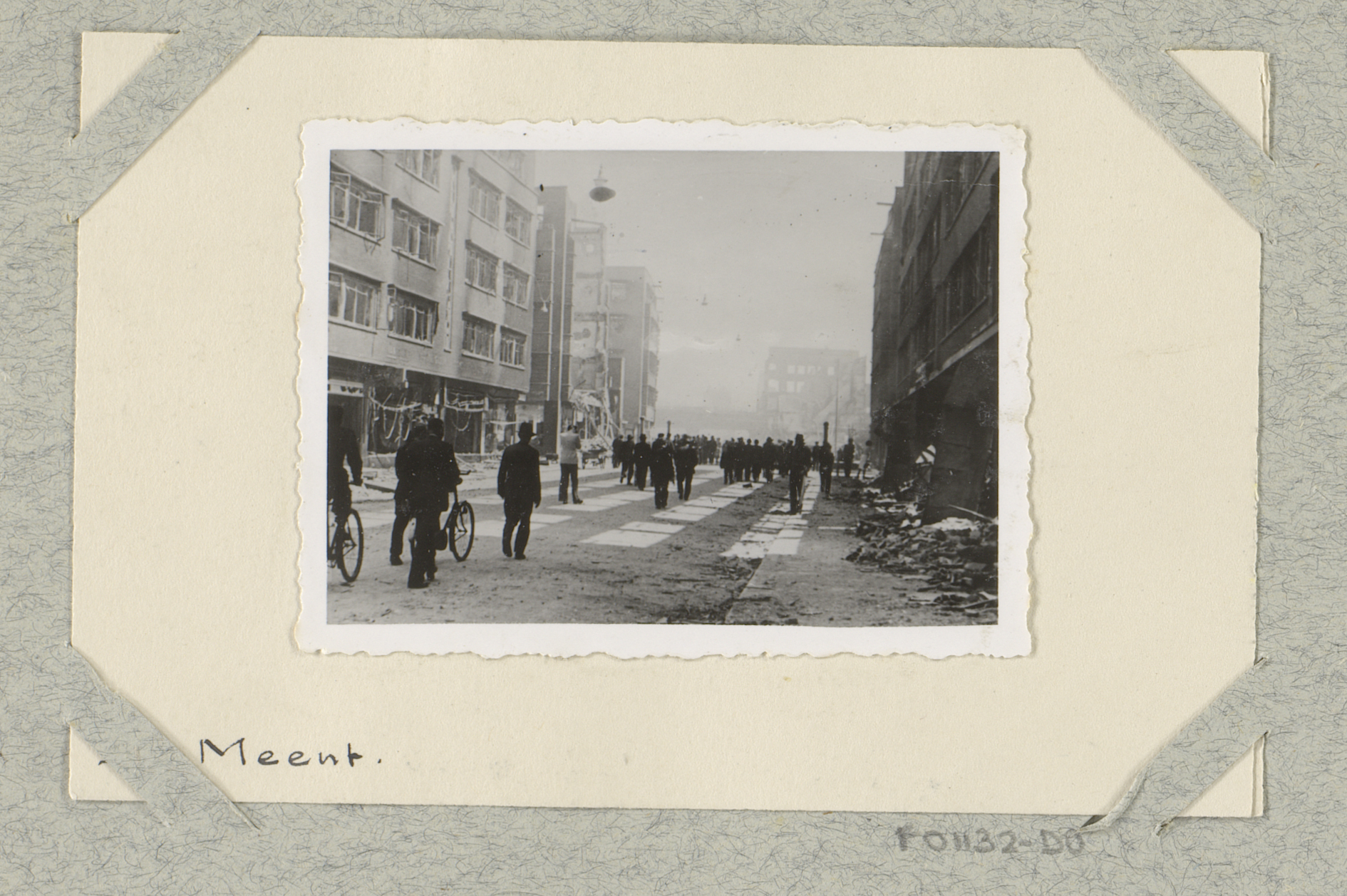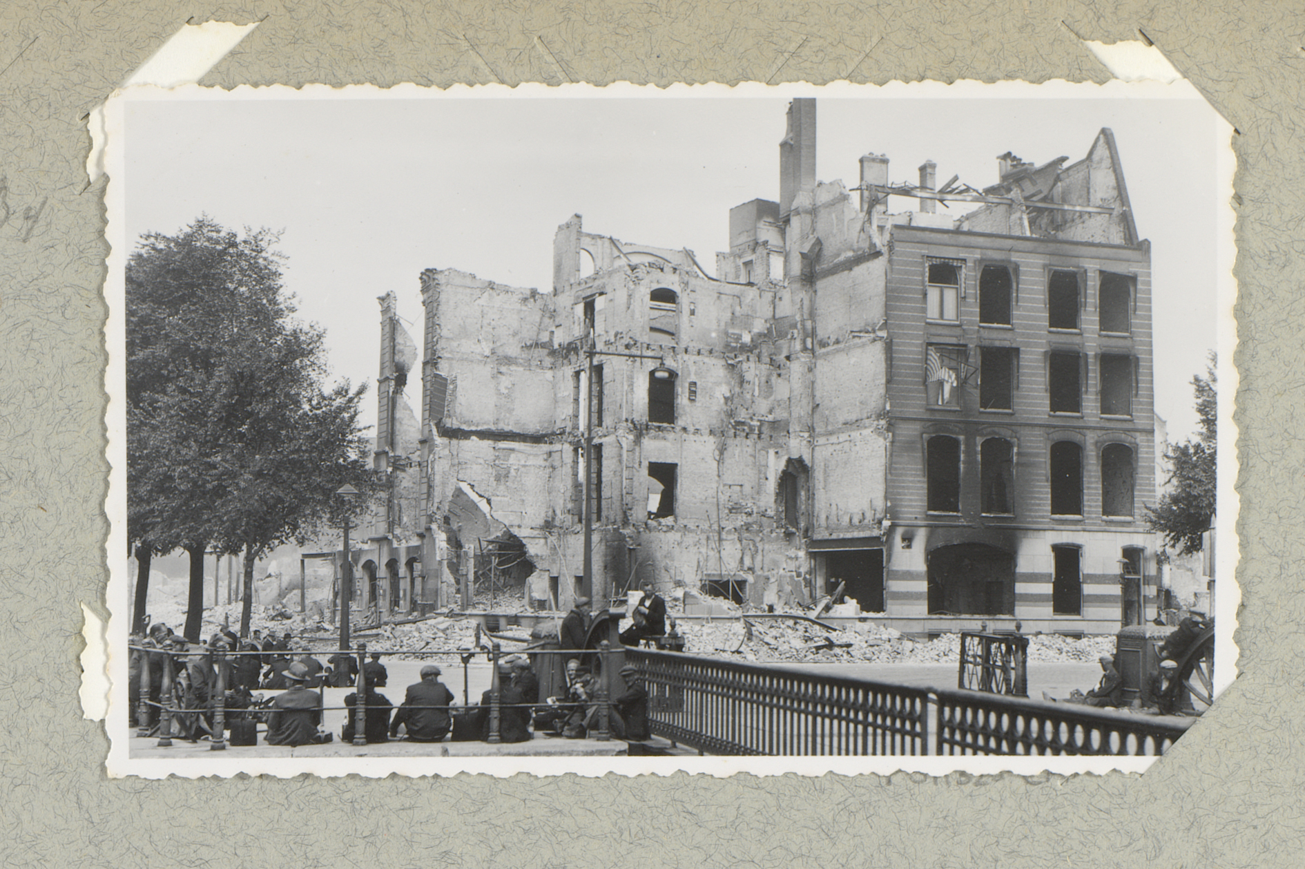 Personen bij ruïnes aan de Coolsingel te Rotterdam