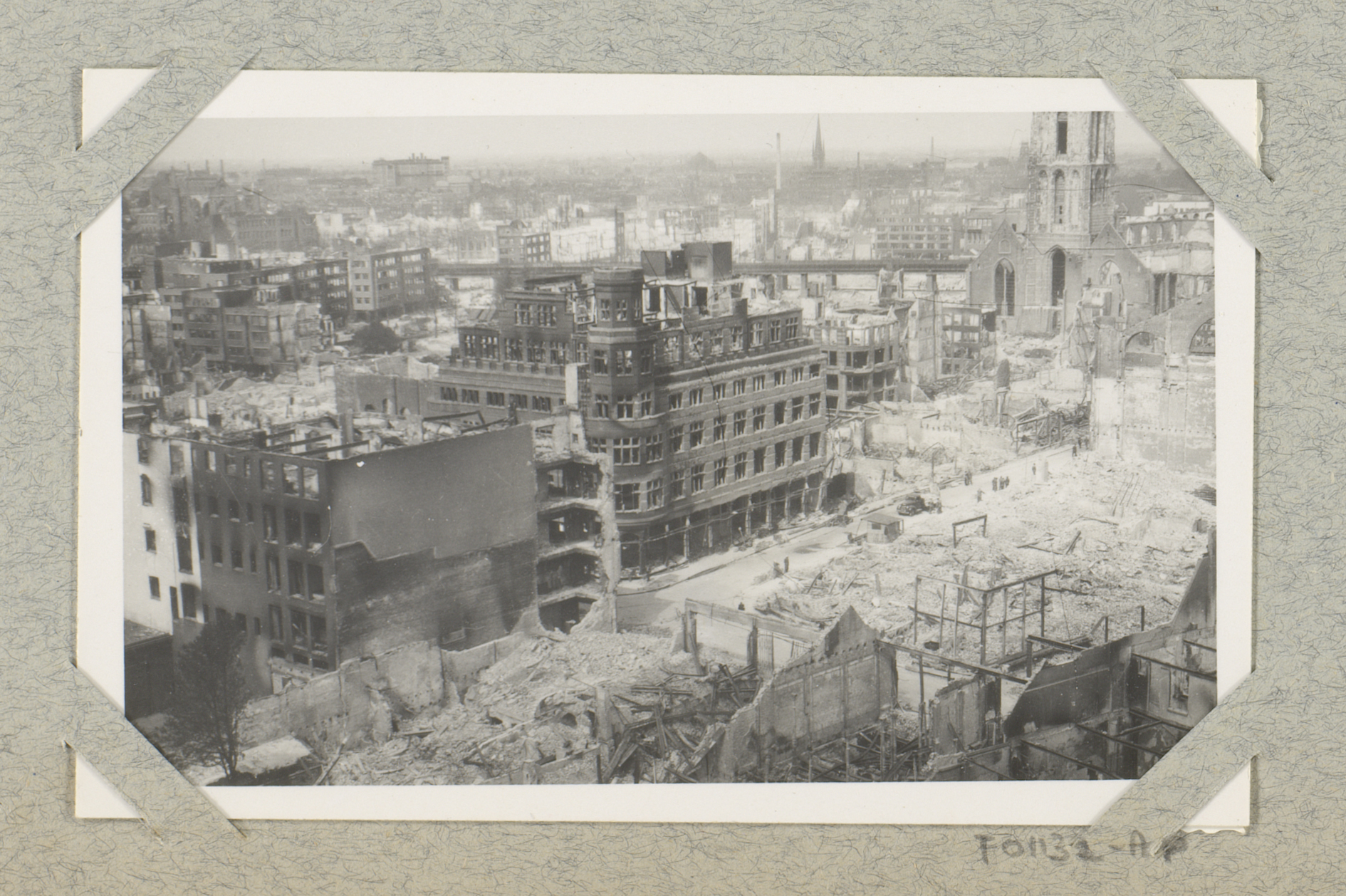 Ruïnes aan het Oostplein, gezien vanaf de Nieuwe Markt