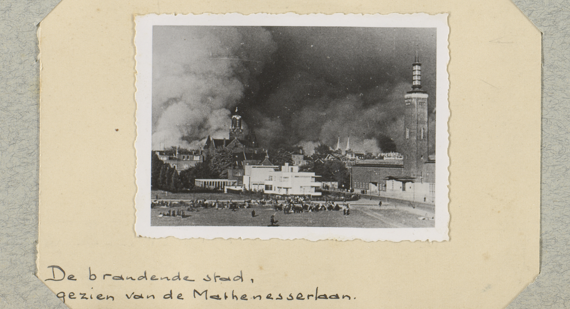 Rookwolken boven Rotterdam, gezien vanaf de Mathenes...