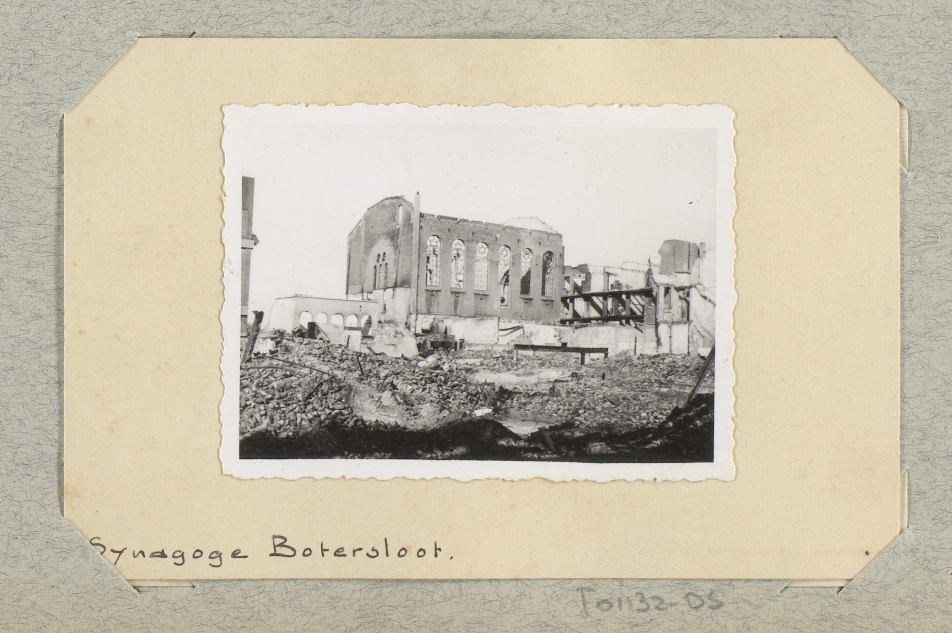 Gezicht op ruïnes van gebouwen aan de Botersloot te ...