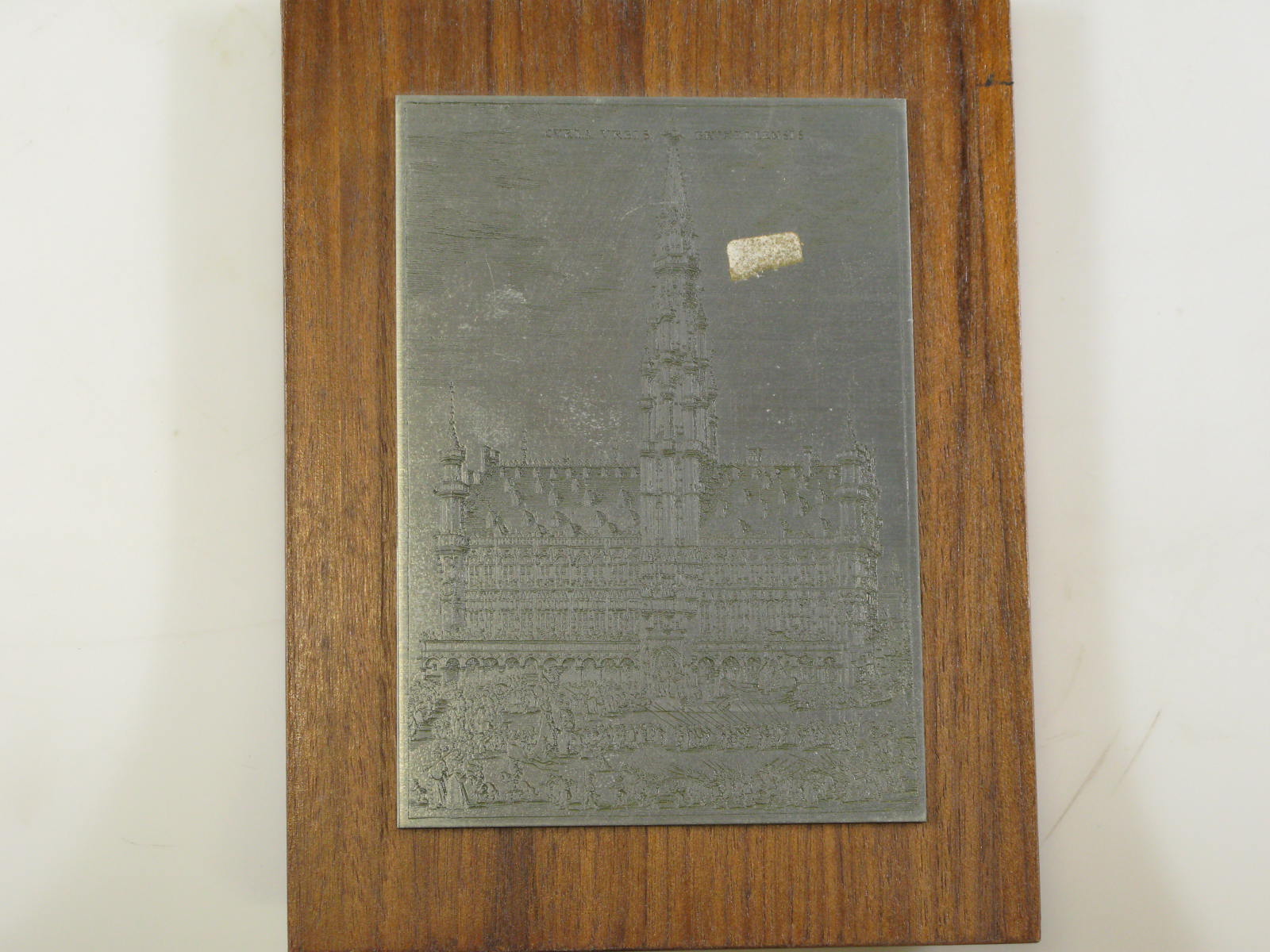 Etsplaat op houten plankje uit Brussel