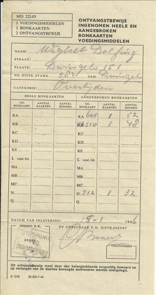 Ontvangstbewijs ingenomen heele en aangebroken bonka...