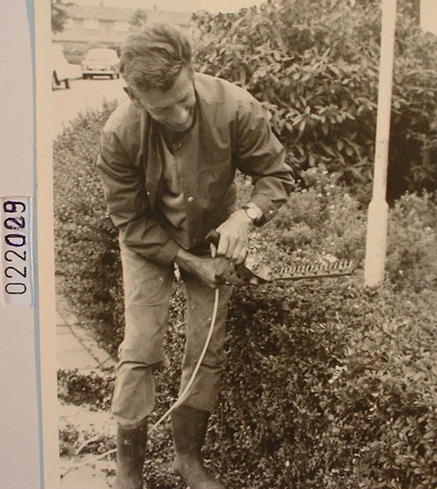 Zicht, maaigereedschap van rond 1935, wordt gebruikt...