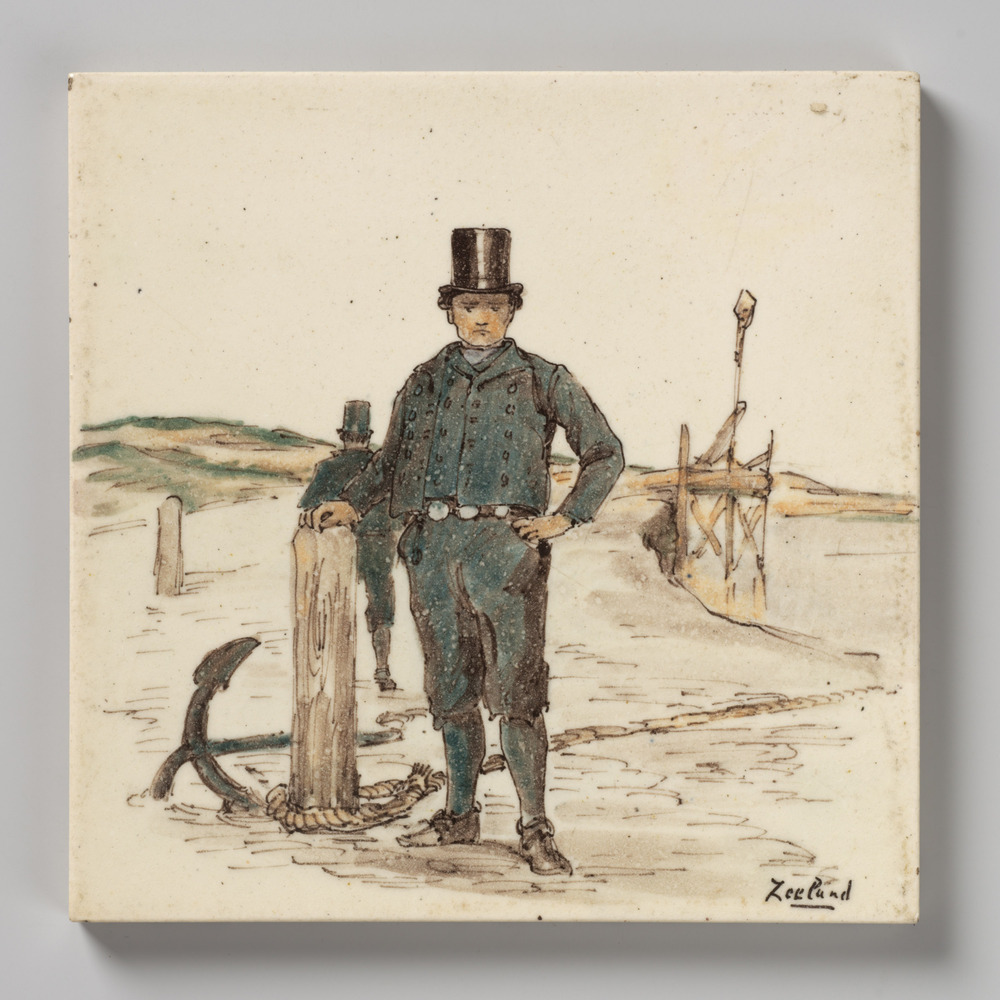tegel van keramiek met tinglazuur, voorstellende: Ja...