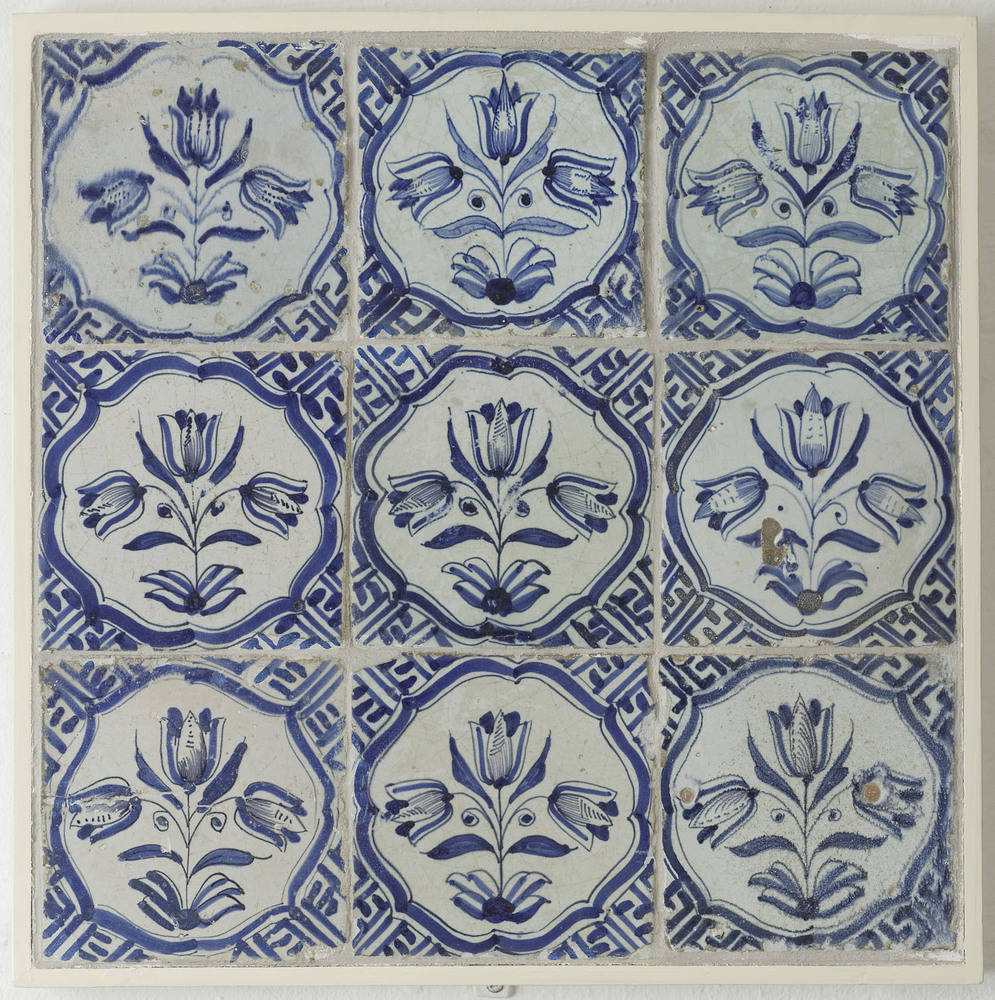 tegel van aardewerk met tinglazuur, voorstellende: l...