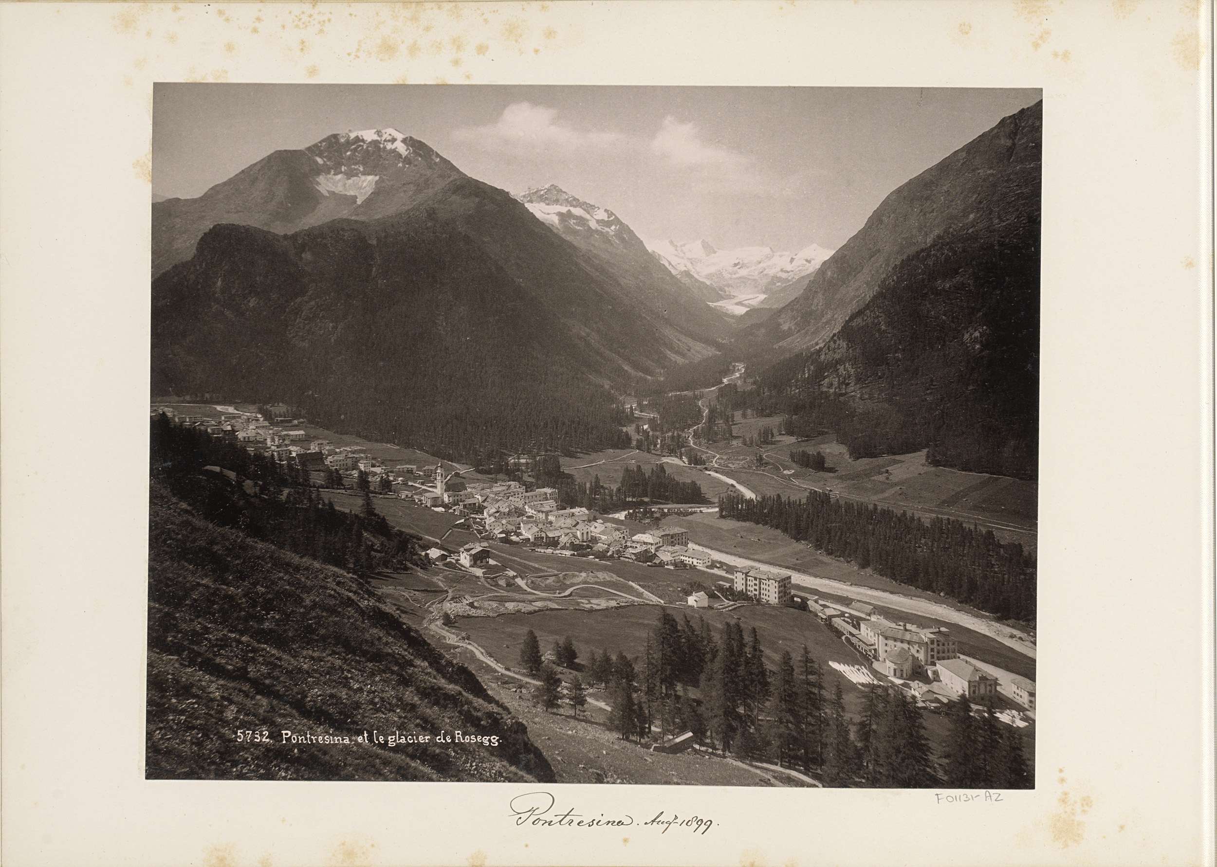 Gezicht op Pontresina en de Roseggletsjer