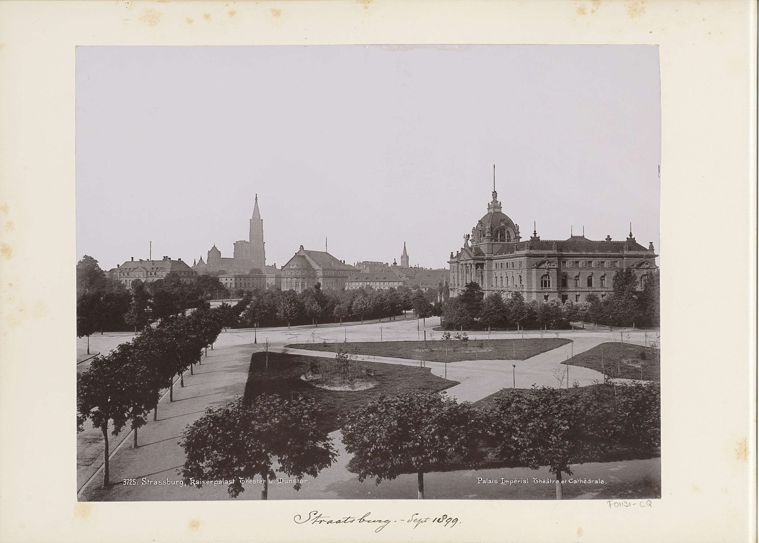 Gezicht op Straatsburg met rechts het Kaiserpalast e...