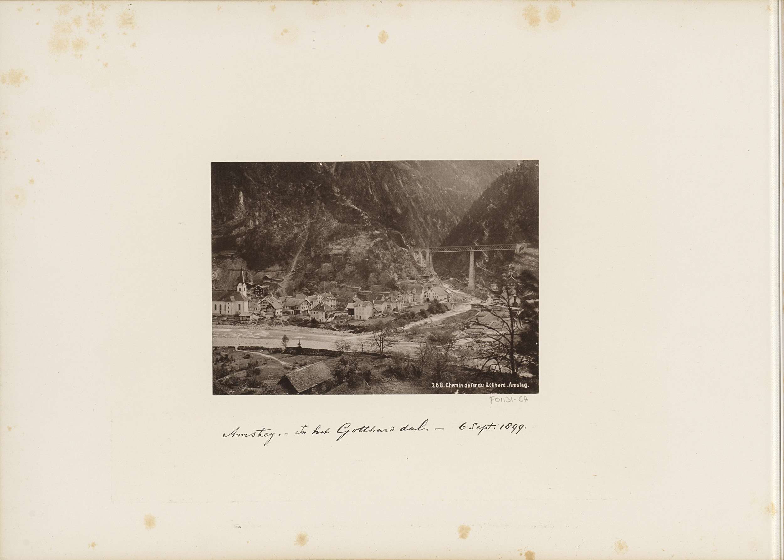 Gezicht op Amsteg en een viaduct van de Gotthardspoo...