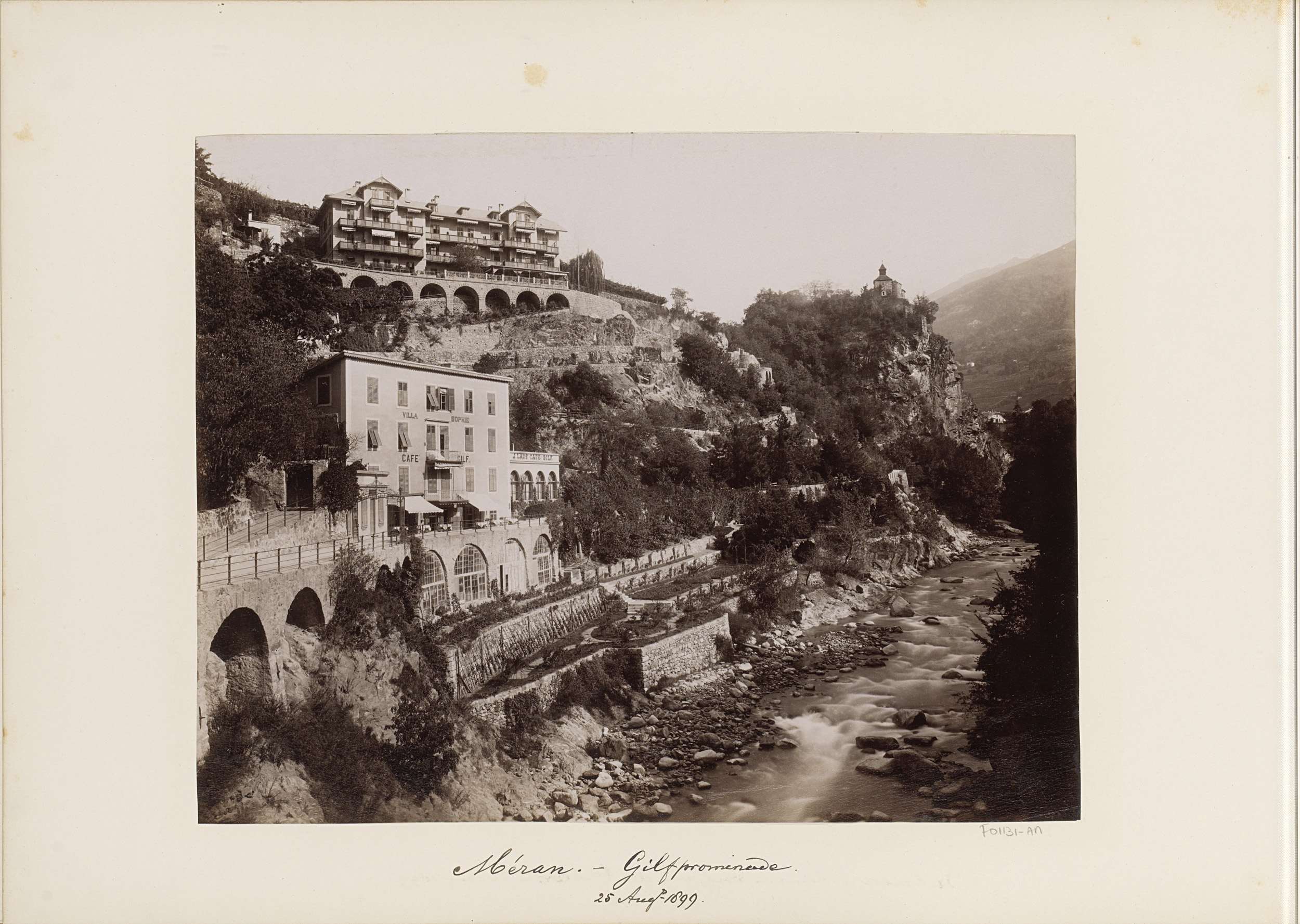 Gezicht op Merano met de Gilfpromenade, villa Sophie...