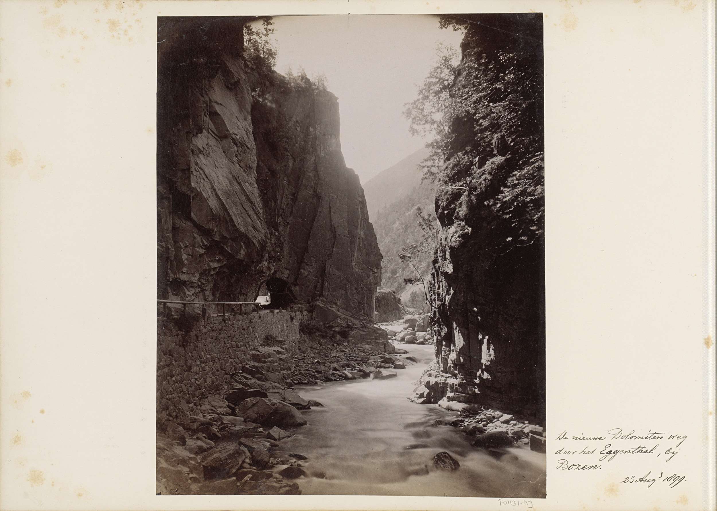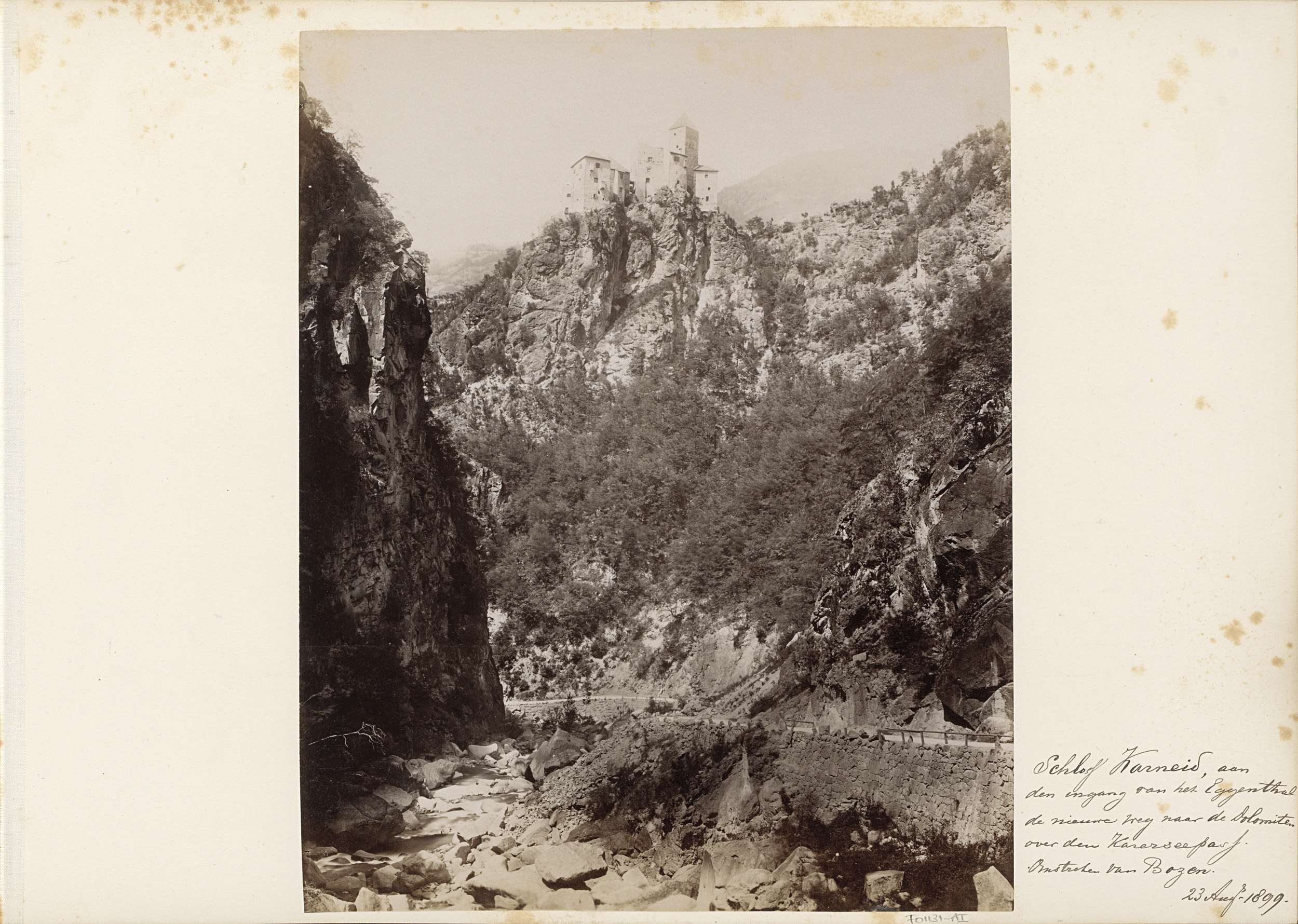 Bergkloof en weg in het Eggental met op de rotsen ka...