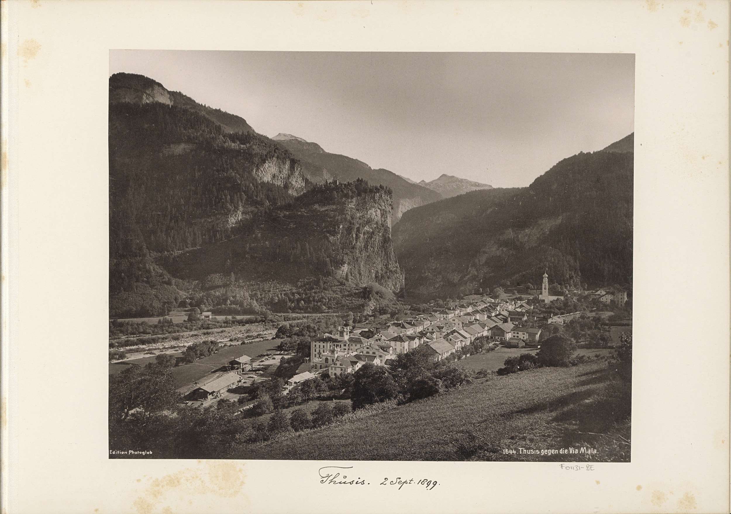 Gezicht op Thusis en het begin van de Via Mala