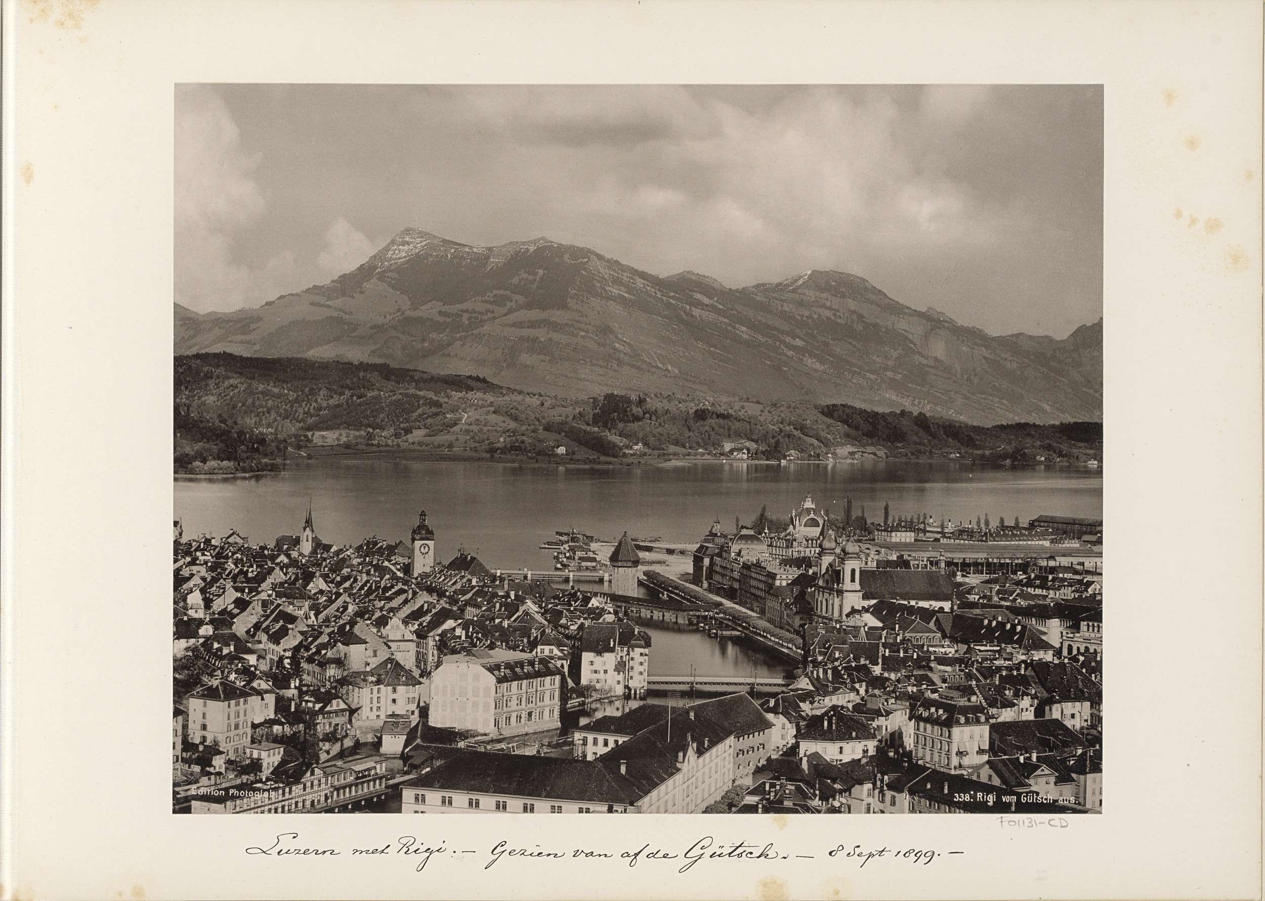 Gezicht op Luzern met op de achtergrond de berg Rigi