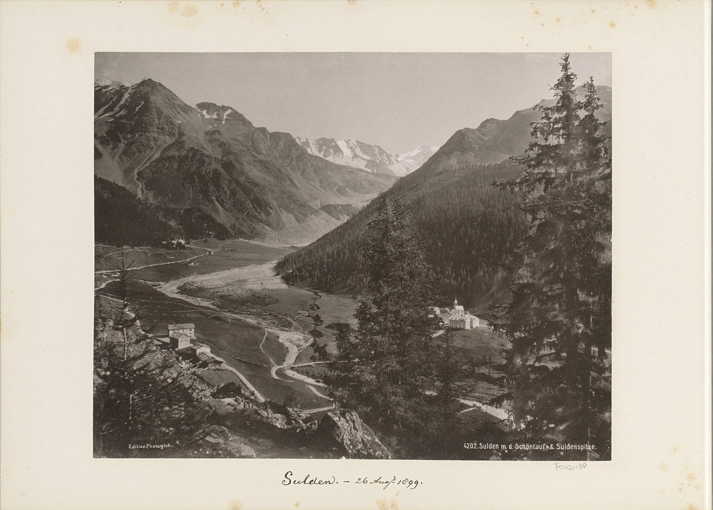 Gezicht op Sulden met de Schöntauf en de Suldenspitze