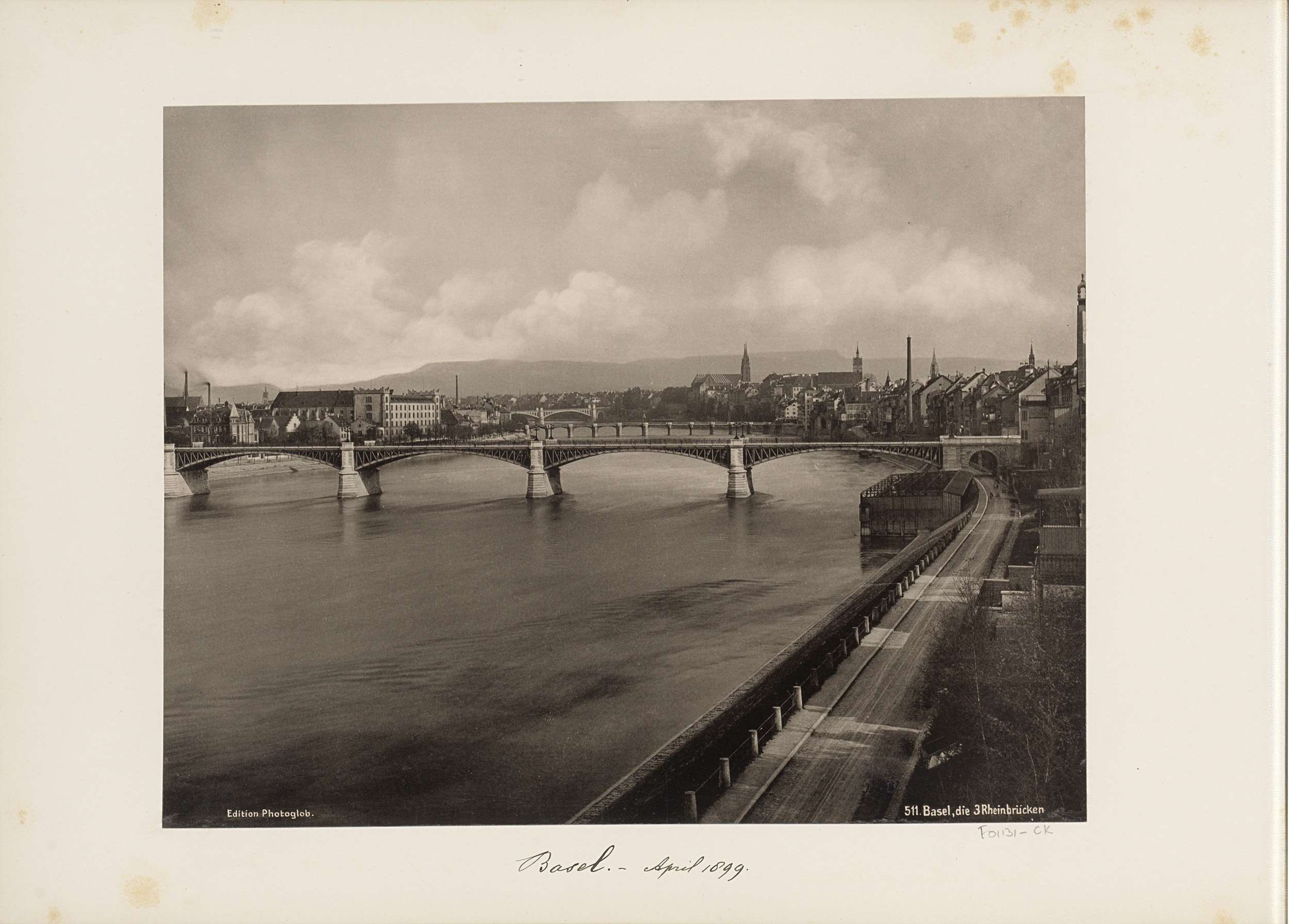 Gezicht op Bazel met drie Rijnbruggen