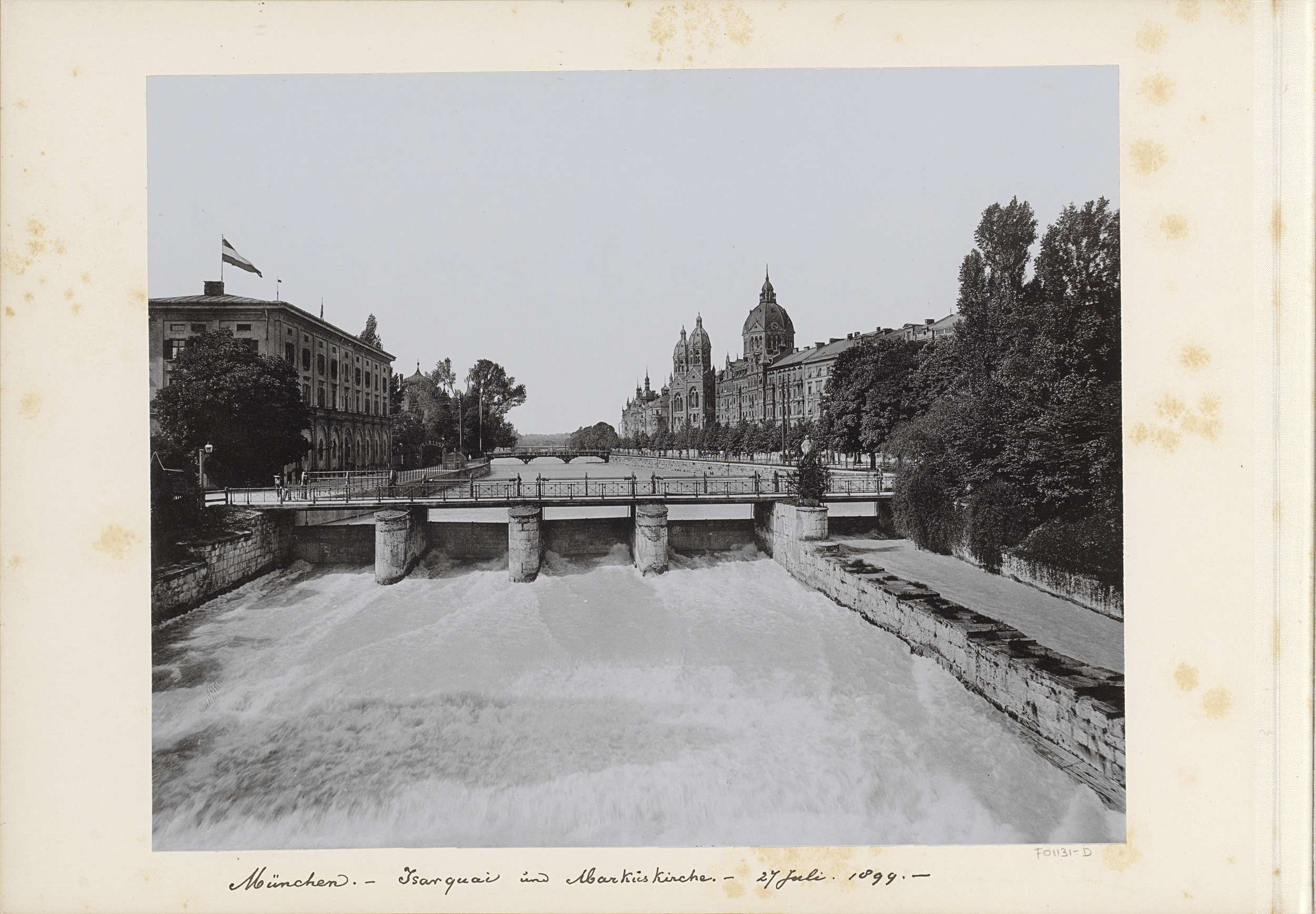 Gezicht op de Isar, een brug en de Markuskirche in M...