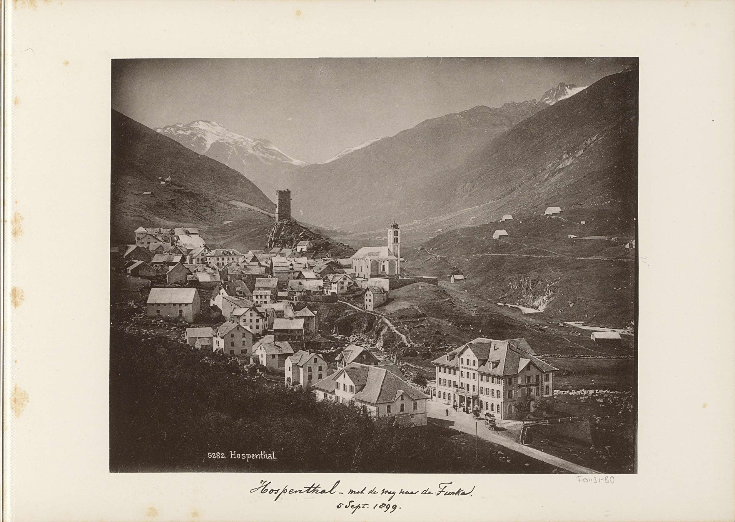 Gezicht op Hospental met op de achtergrond de Turm d...