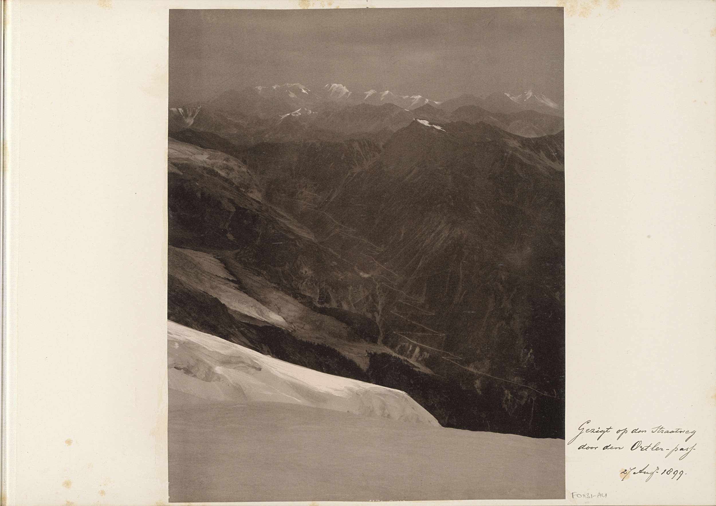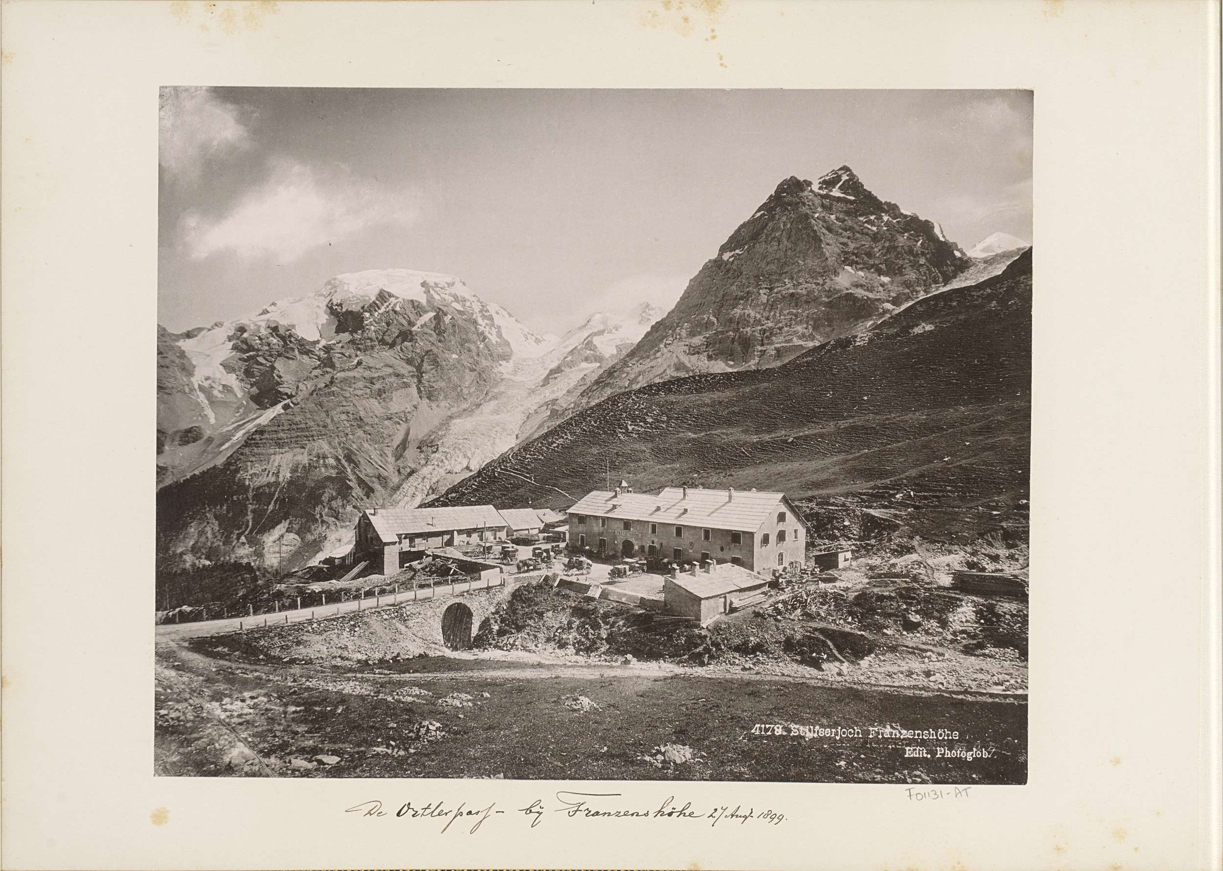 Gezicht op de Stelviopas en de uitspanning Ferdinand...