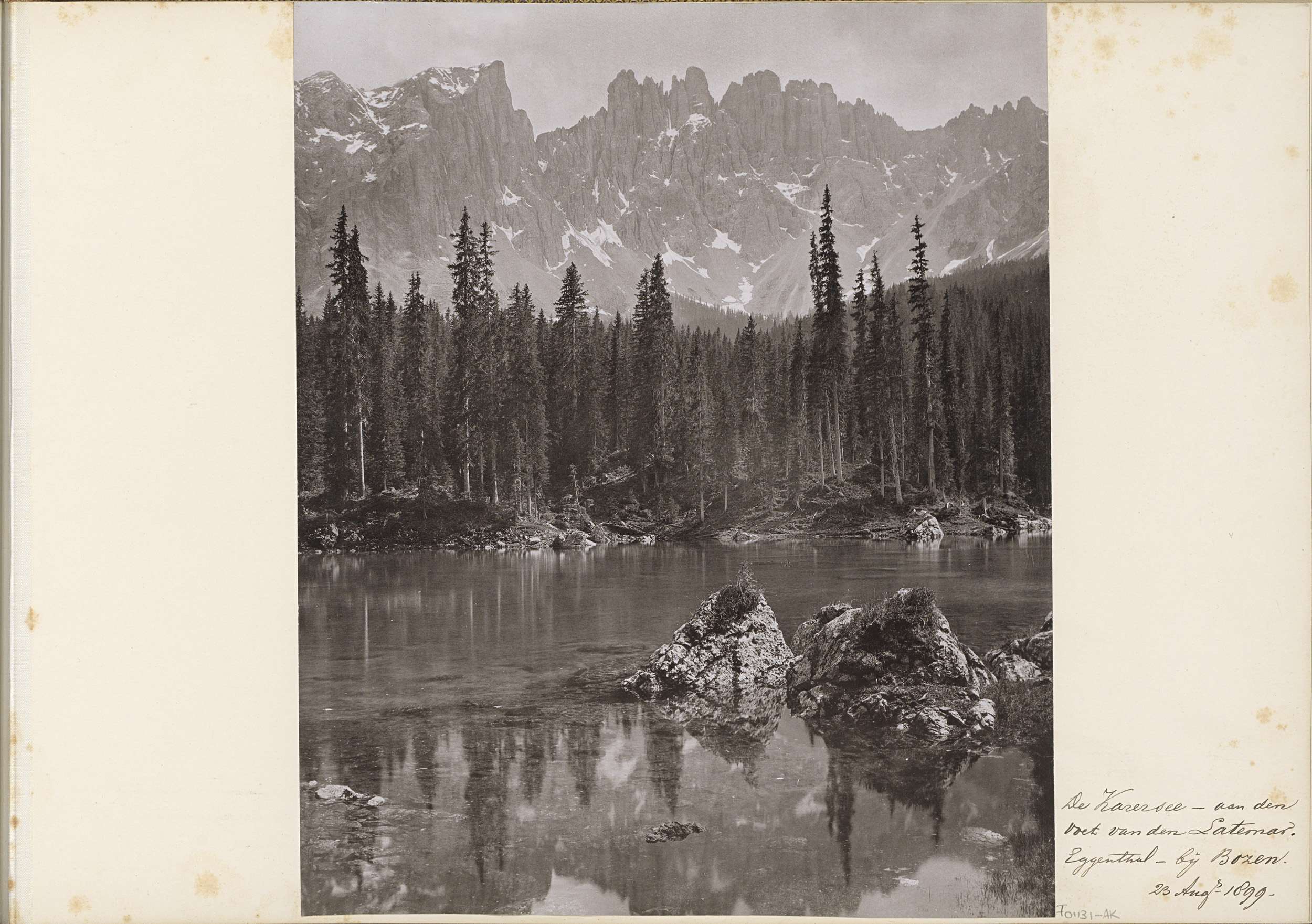 Gezicht op de Karersee in het Eggental bij Bolzano, ...