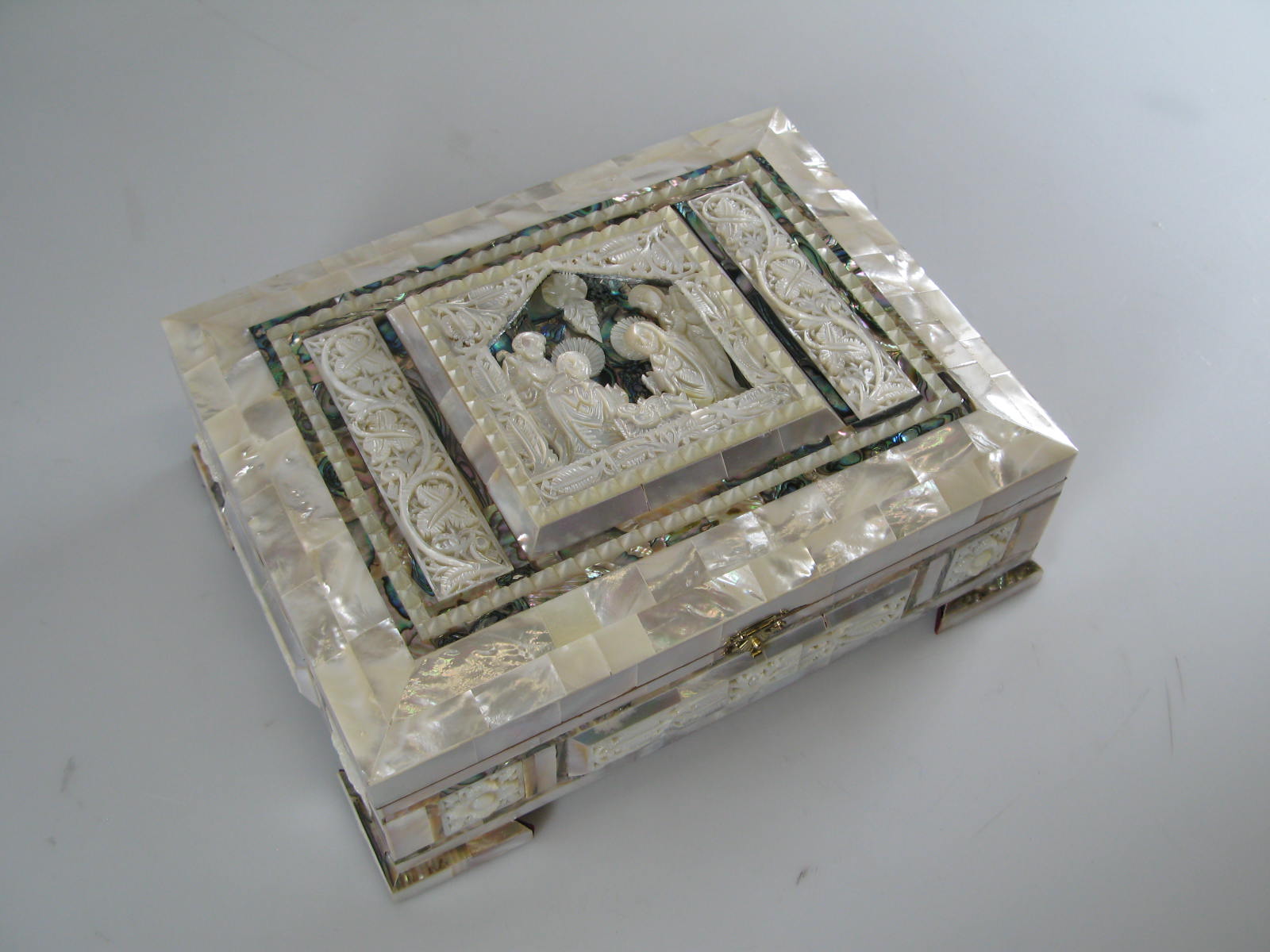 Parelmoer kistje met kersttafereel geschonken door Y...