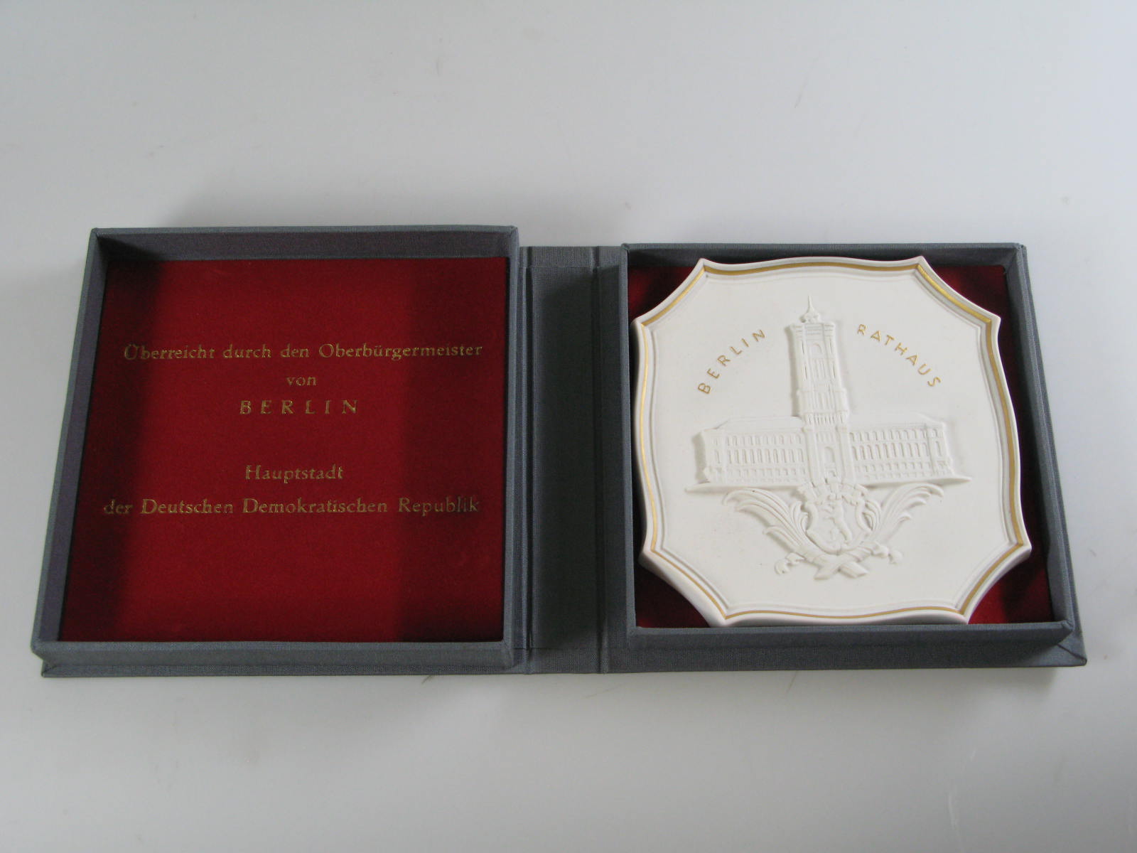 Doos voor plaquette van raadhuis Oost-Berlin