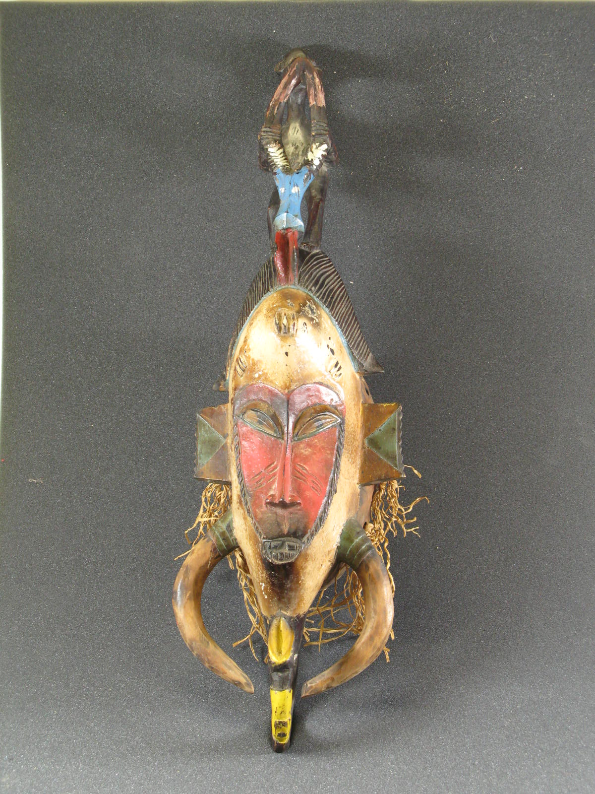Afrikaans masker voorstellende figuur dat op een kop...