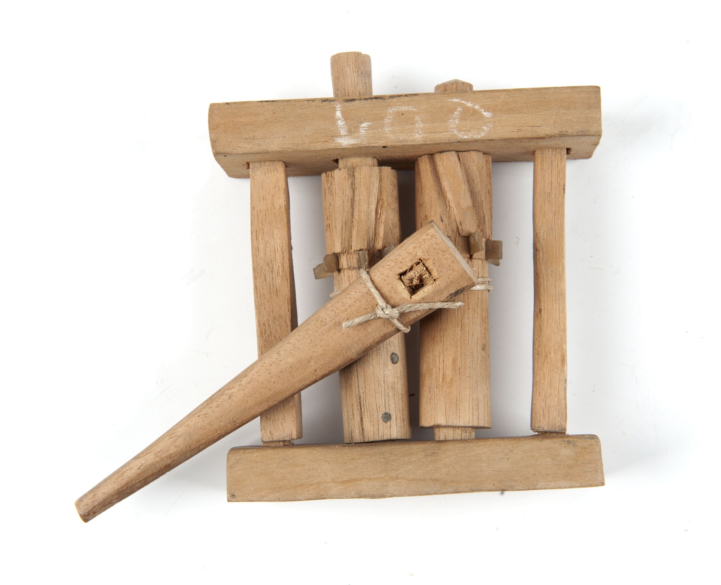 Incomplete ronde houten wayangpop (golek) voorstelle...