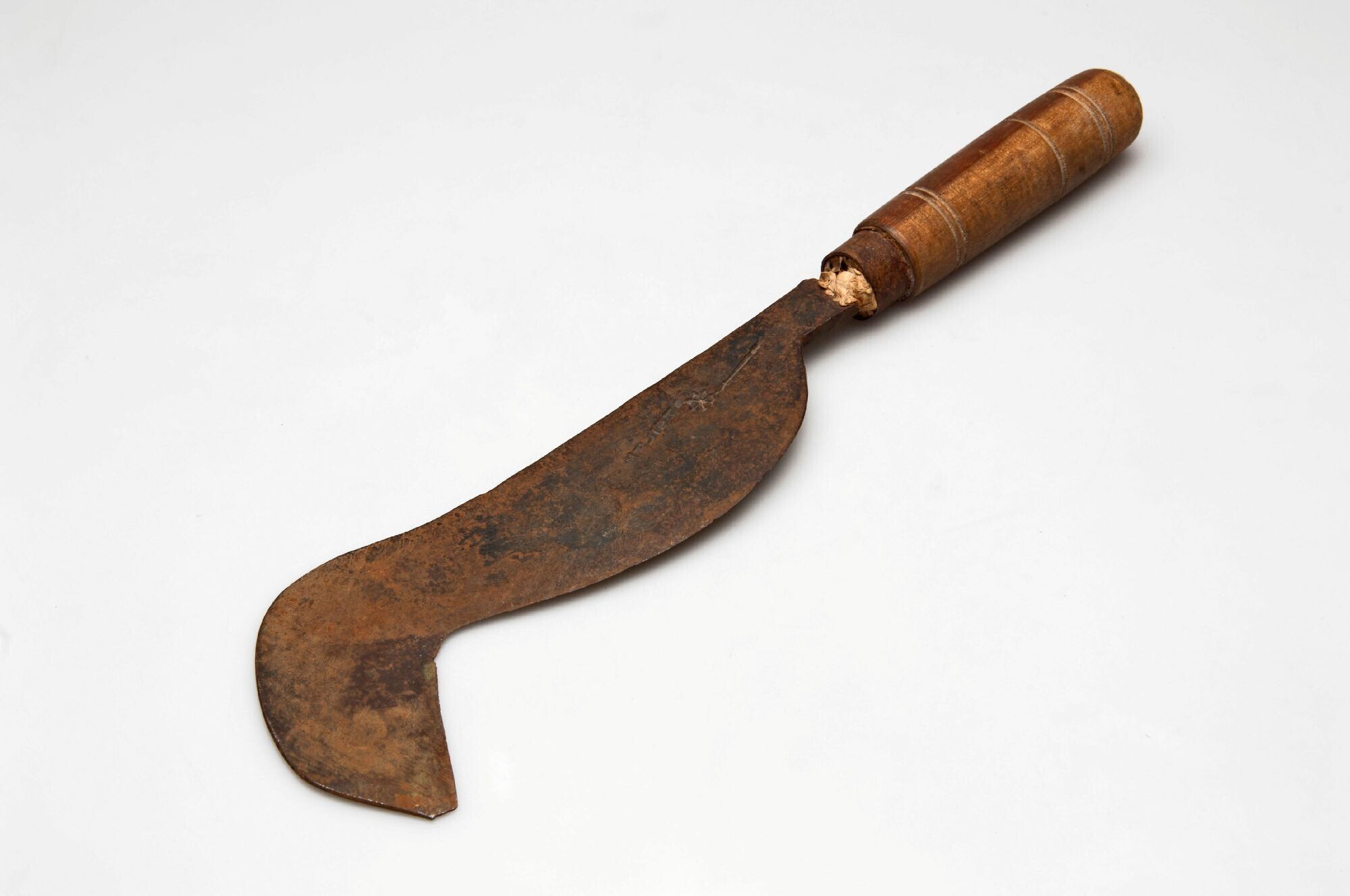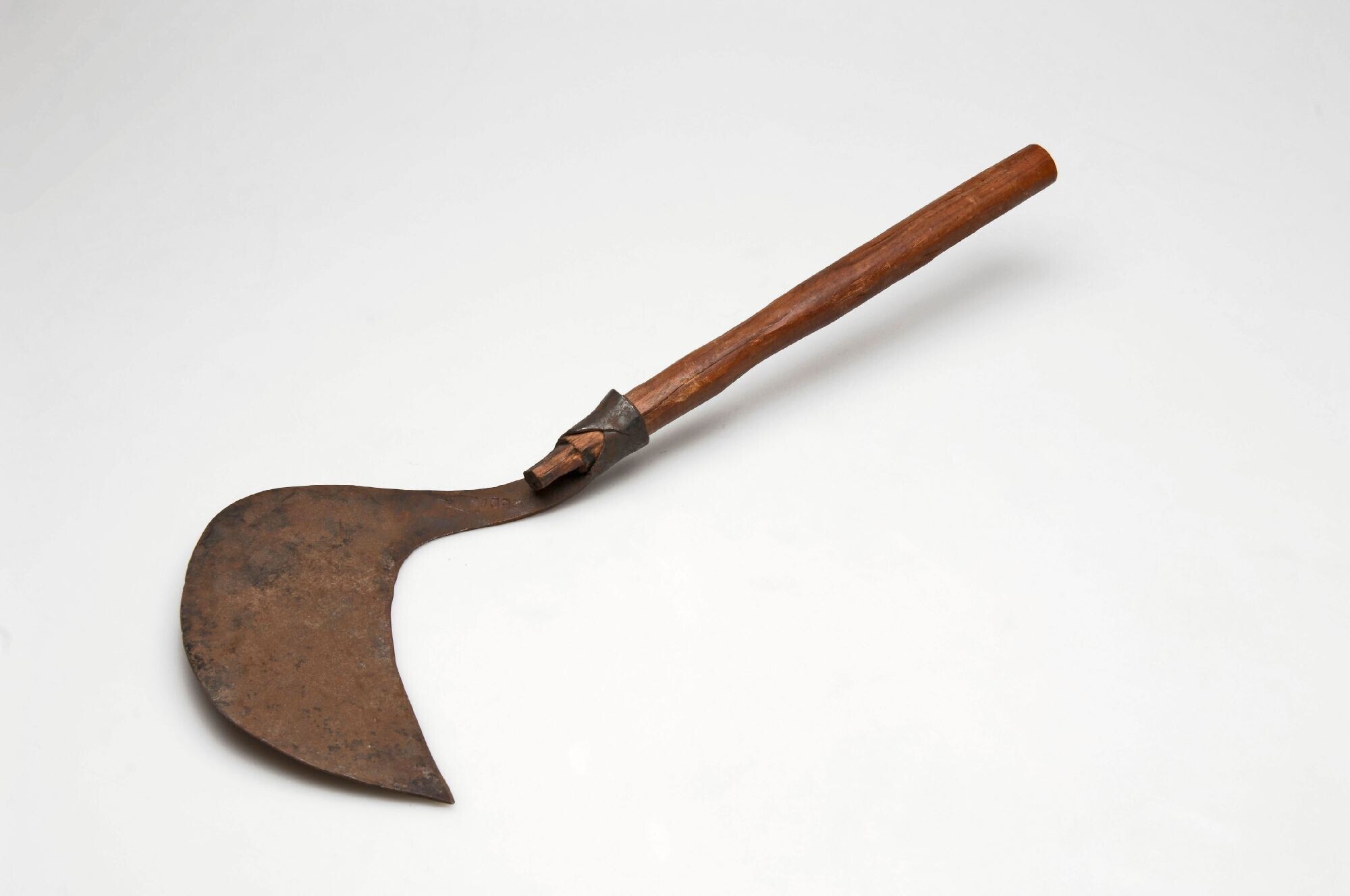 Sikkelvormig grasmes met houten steel (2e gebruik)
