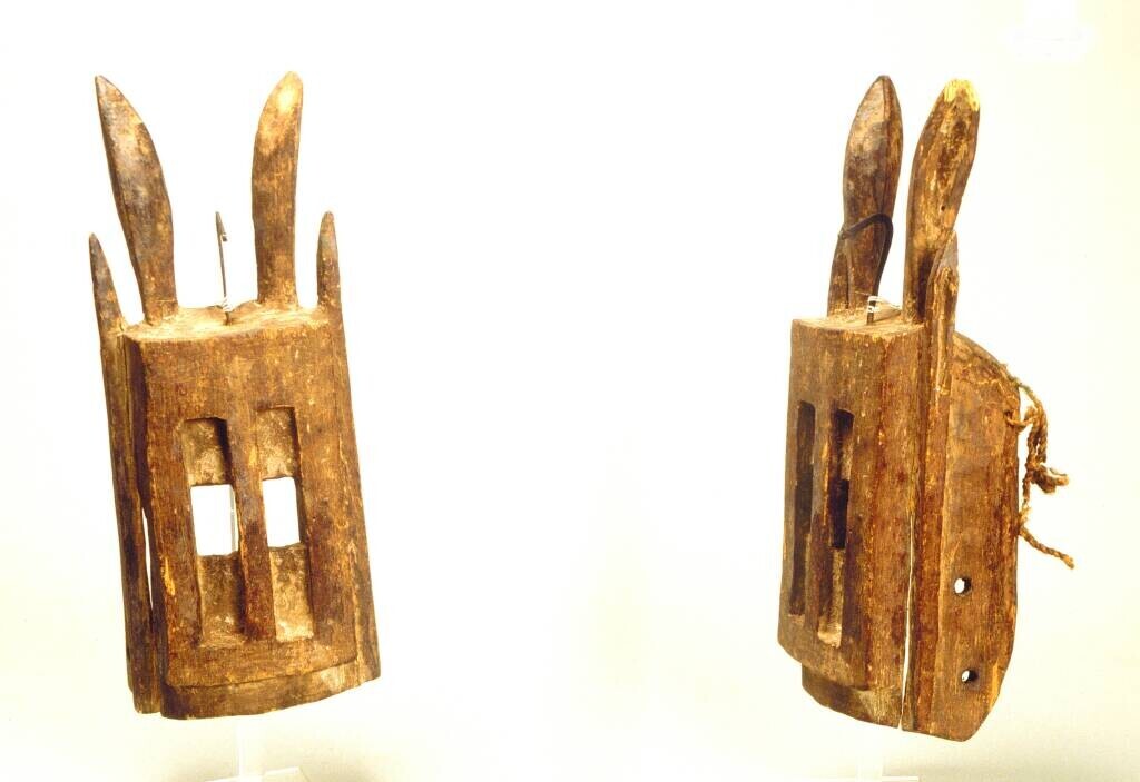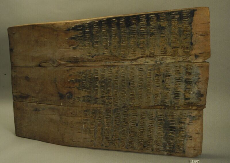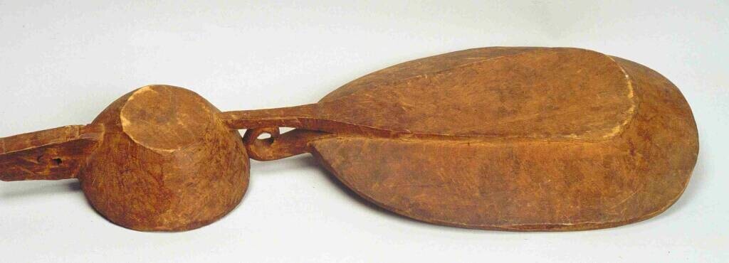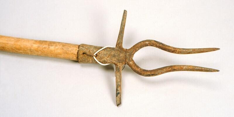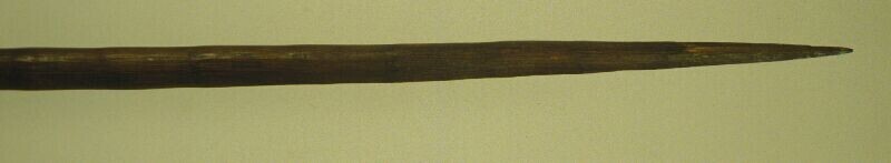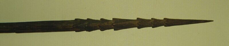 Vermoedelijk twee speren, geheel van hout met weerhaken