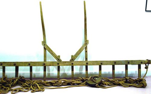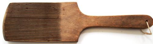 Strijkstok van hout en touw gebruikt om het schoepen...