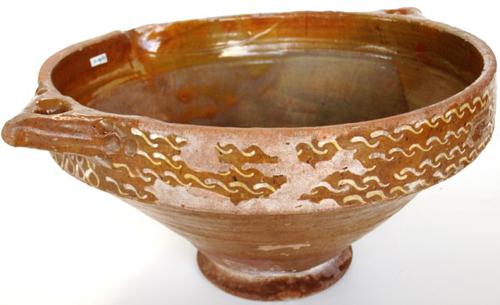 Afroomkom van aardewerk gebruikt voor het schenken v...