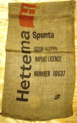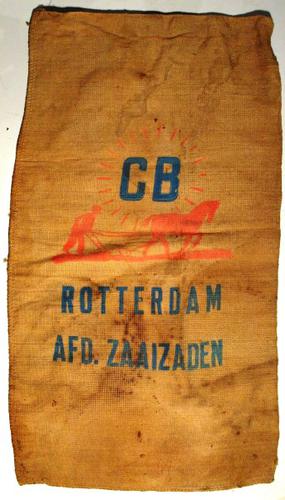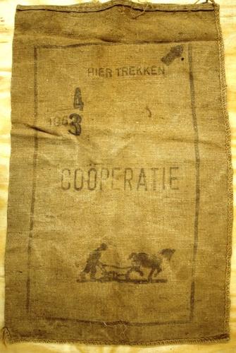 Zak van jute gebruikt om graan of kunstmest in op te...