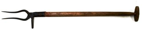 Bietenrooivork van metaal en hout gebruikt om een bi...
