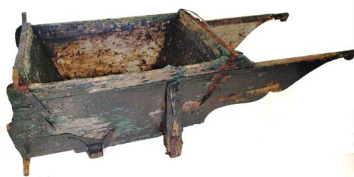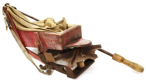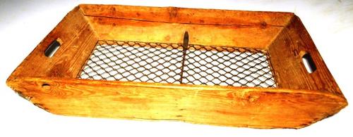 Zaaiviool van hout en metaal gebruikt om fijne zaden...