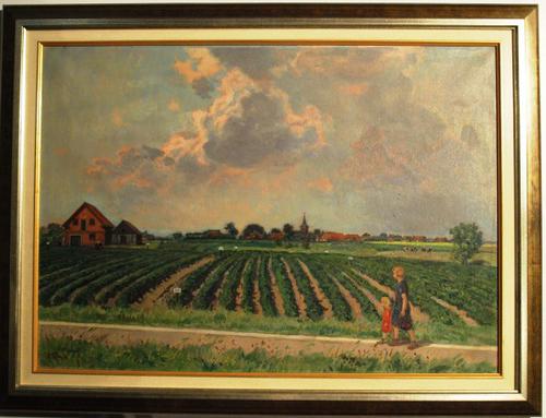 Schilderij in olieverf getiteld 'Gezicht op het buit...