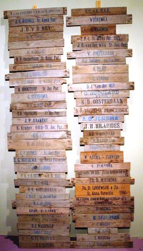 Lat van hout met naam en woonplaats afkomstig van ee...
