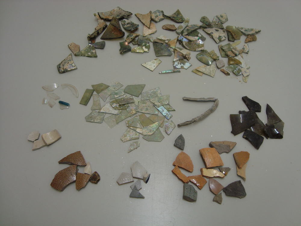 Fragmenten, glas/lood/pijpaarde/steengoed,