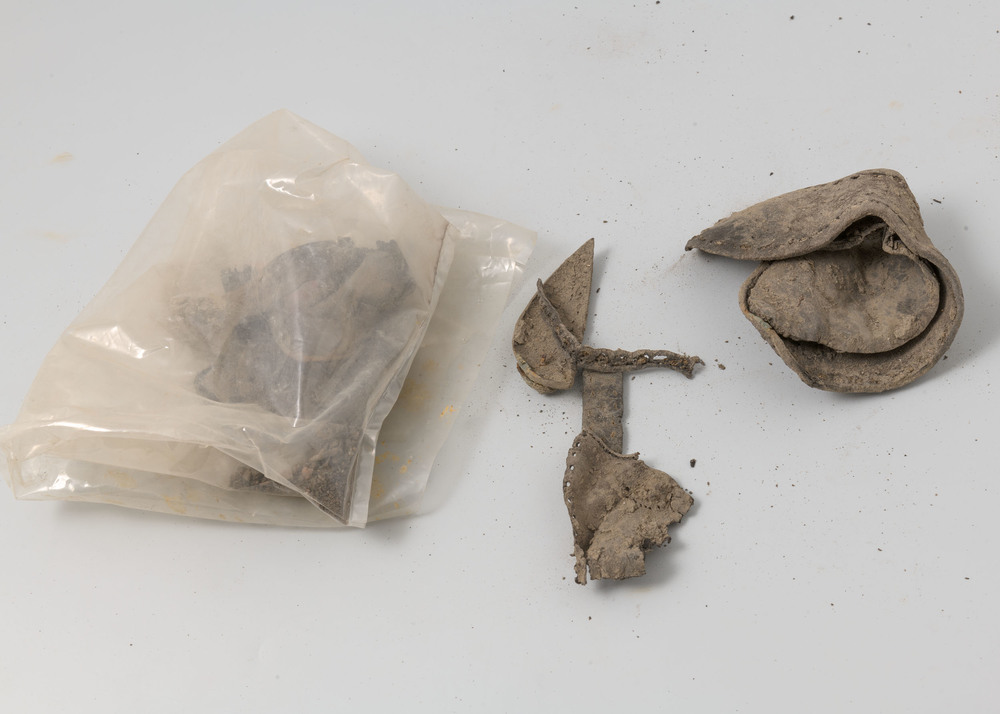 Fragmenten, lood/been/aardewerk/ijzer,