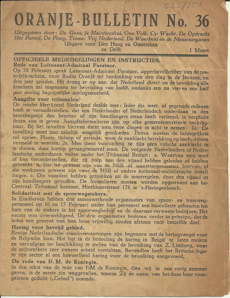 Oranje Bulletin, no 36 , 1 maart