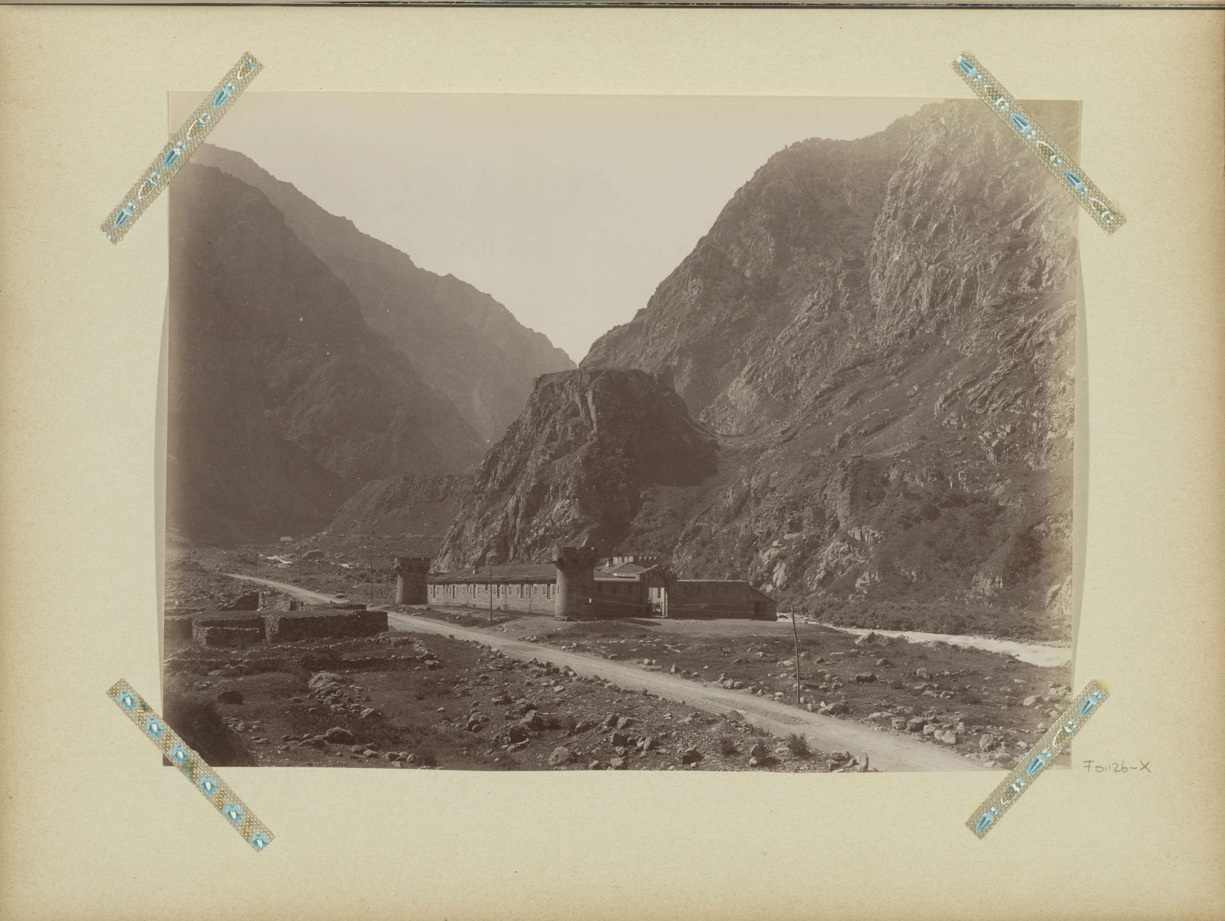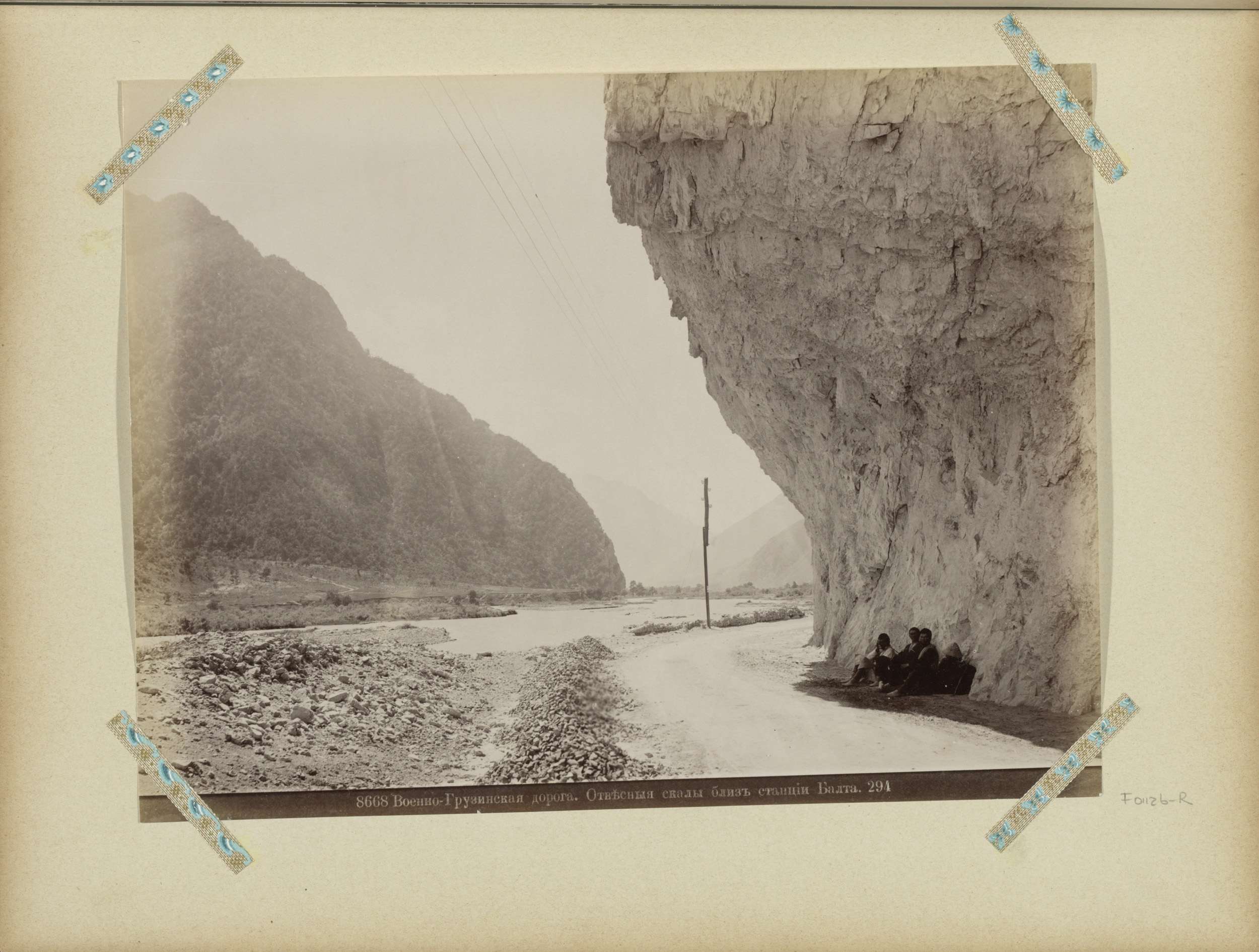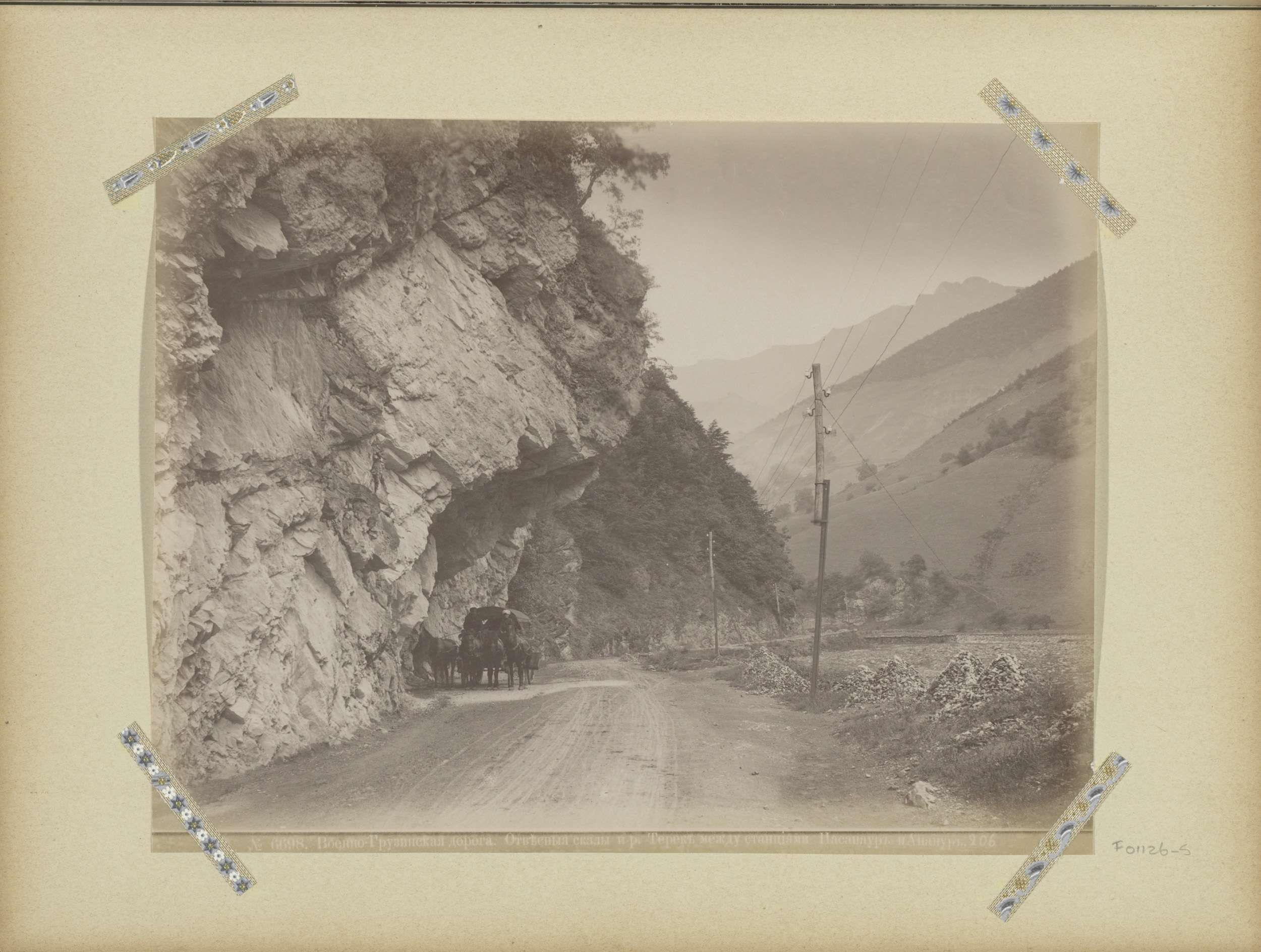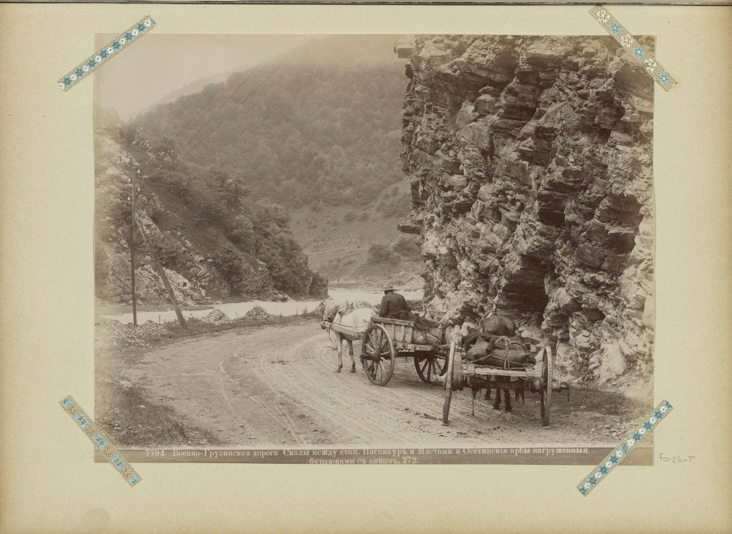 Paard en wagen op een militaire weg langs een rivier...