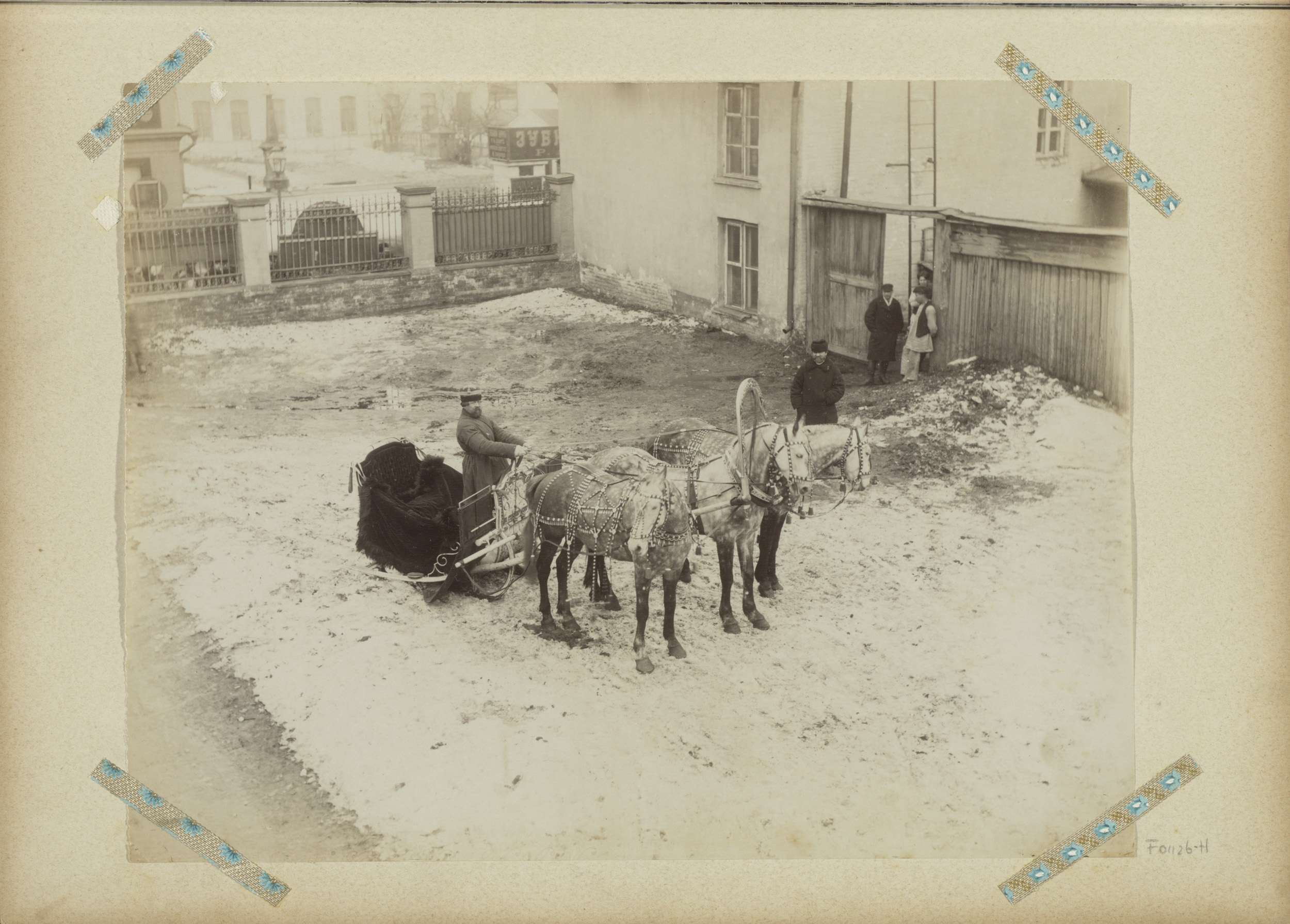 Trojka op een binnenplaats, vermoedelijk in Moskou