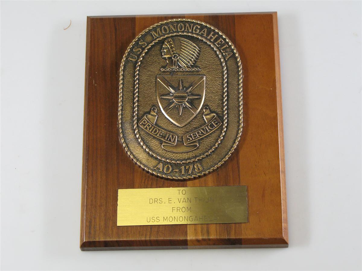 Plaquette geschonken door de U.S.S. Monongahela (AO-...