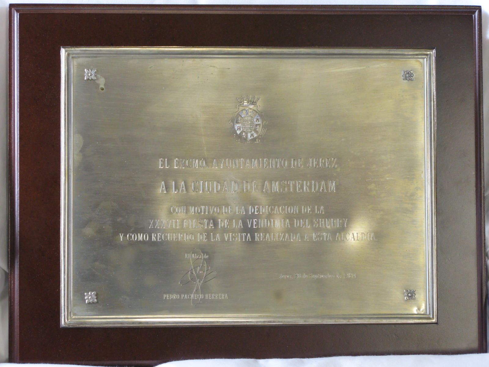 Plaquette t.g.v. bezoek aan Jerez (Spanje)
